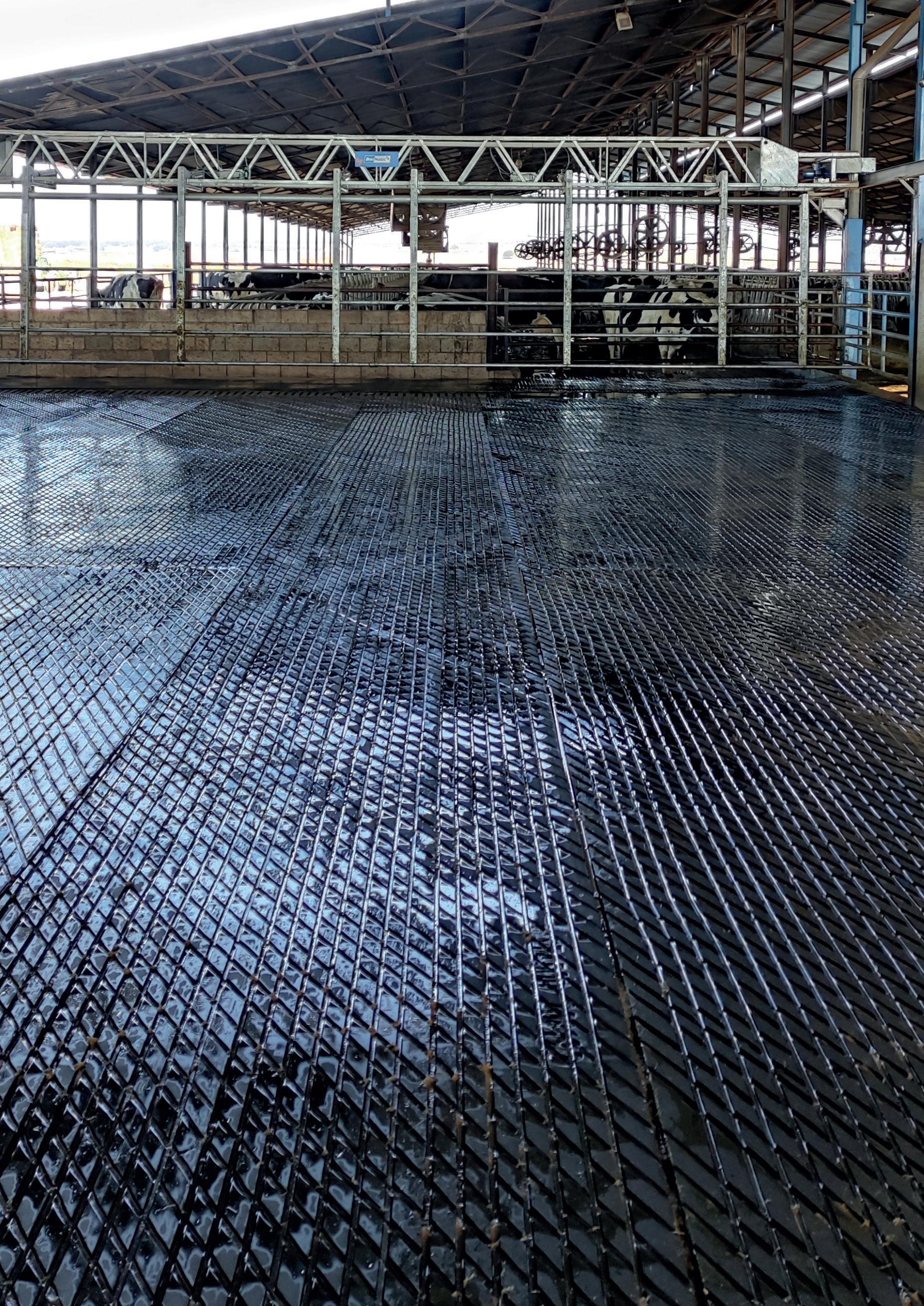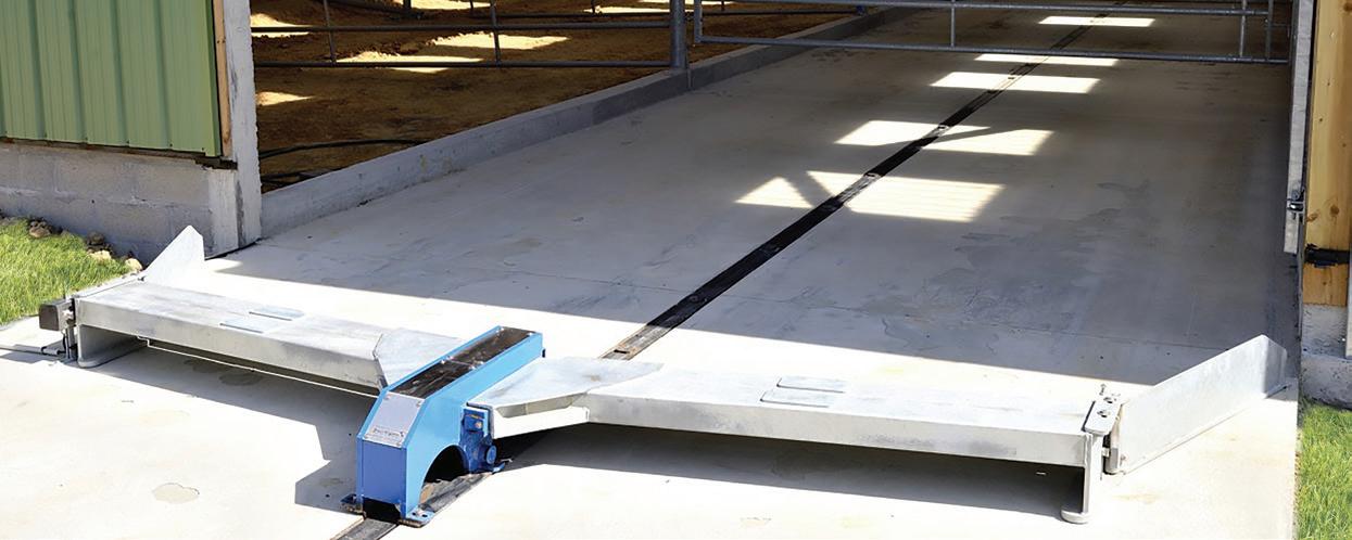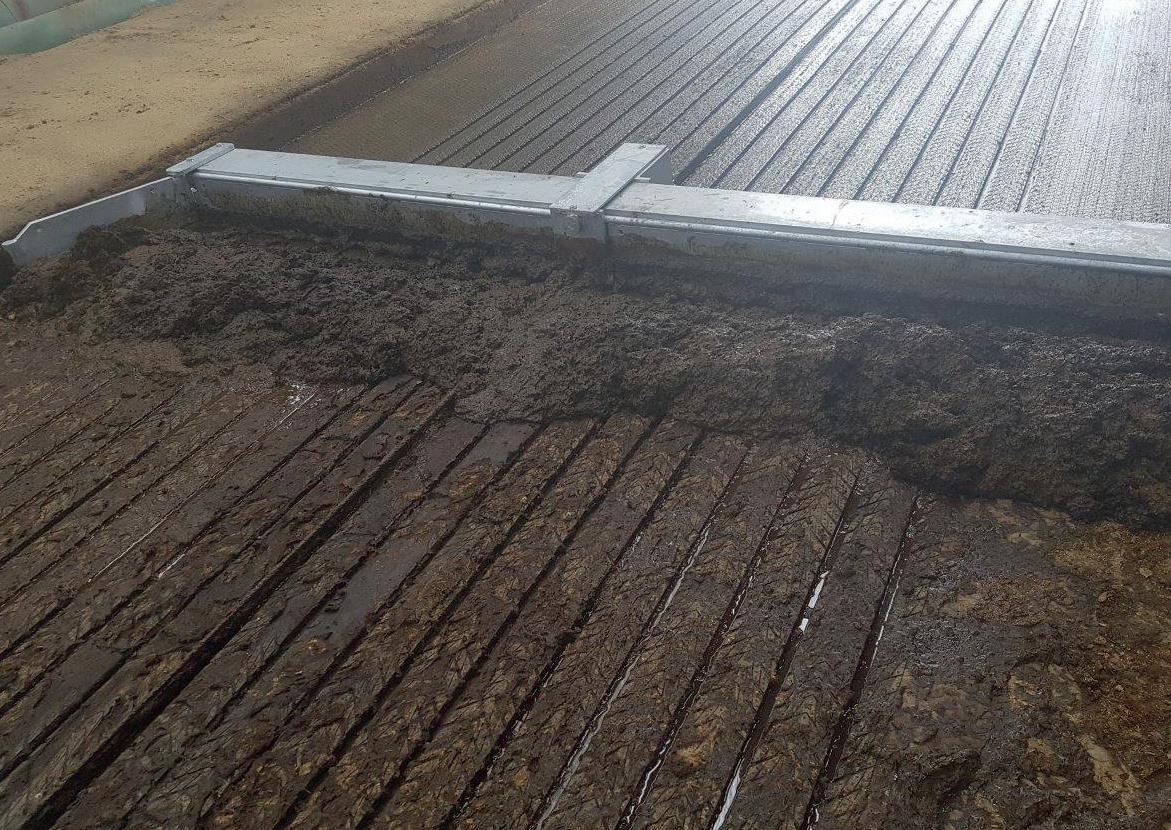 Spezielle Schiene für Misthaufen: Diese wird im flachen Ableitbereich verwendet, sodass die Aufnahme des Mists mit einem Traktor problemlos möglich ist.