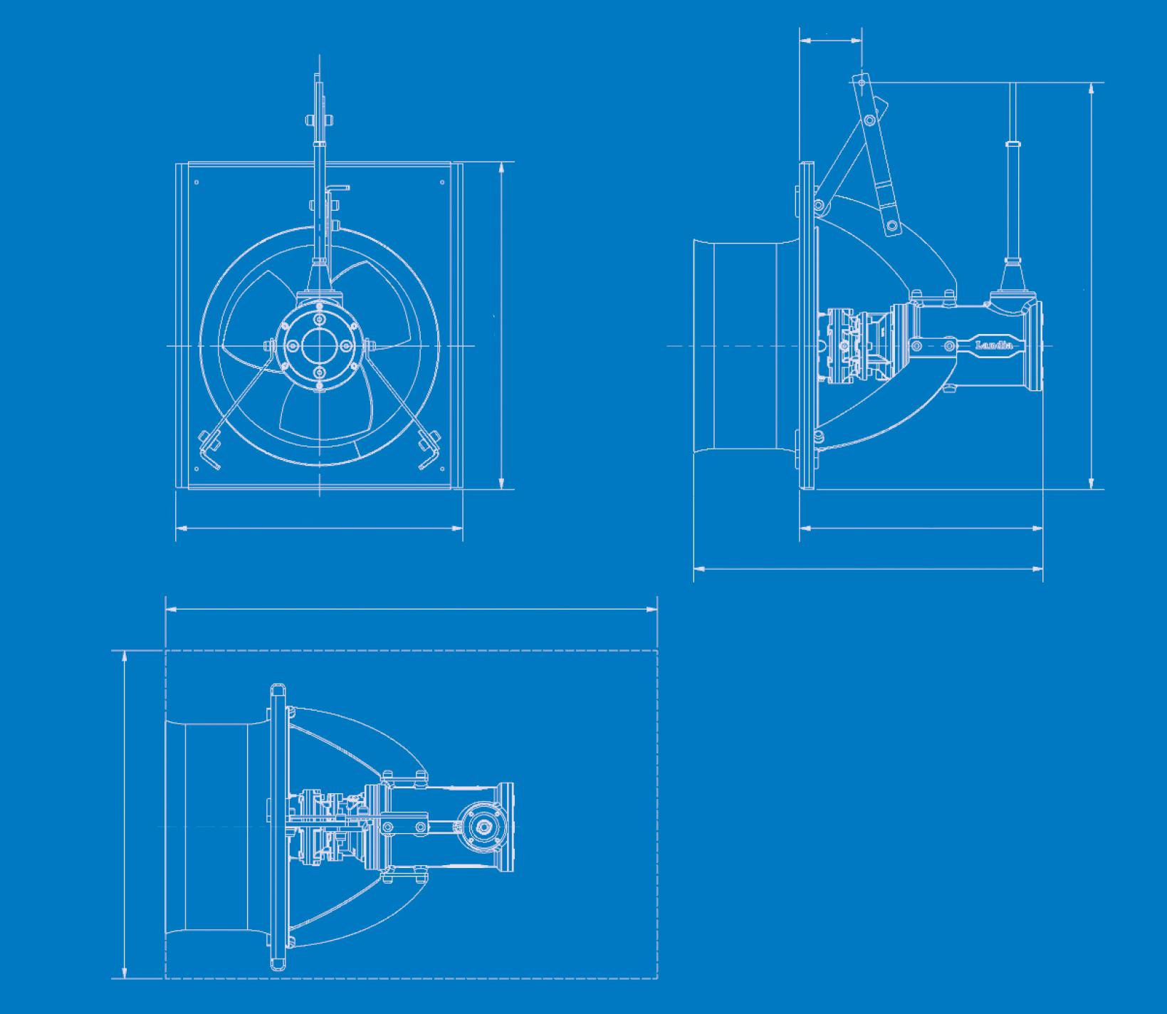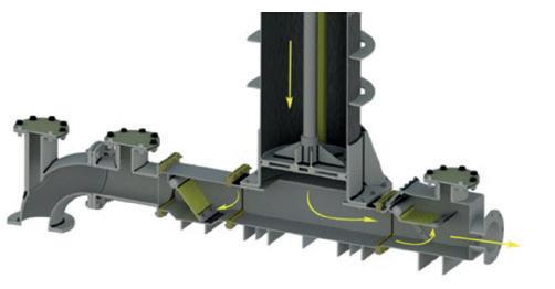 Horizontal: Die Umlenkrolle mit einem Durchmesser von 250 mm ist auf zwei Lagerreihen mit zwei „SPI“Dichtungen montiert, um deren Dichtheit und Langlebigkeit zu gewährleisten. Die Umlenkrolle ist aus Edelstahl hergestellt.