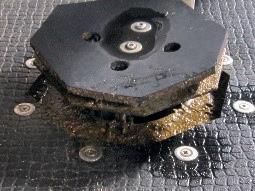 Schiene mit Steckelement auf der Oberfläche: ein Steckelement pro Meter, Verwendung im Gebäude. Ein großer Vorteil bei Frost oder auf trockenem Boden, da sich der Nocken (Schieber) immer vorwärts bewegt.