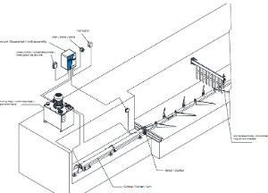 Installation am Gangende zur ziehenden Verwendung mit Öffnung zur Grube. Benötigt einen Wasseranschluss. Das Gehäuse muss auf der Rutschenseite installiert werden, damit die Flüssigkeit in den Kanal oder auf den Misthaufen abfließen kann.
