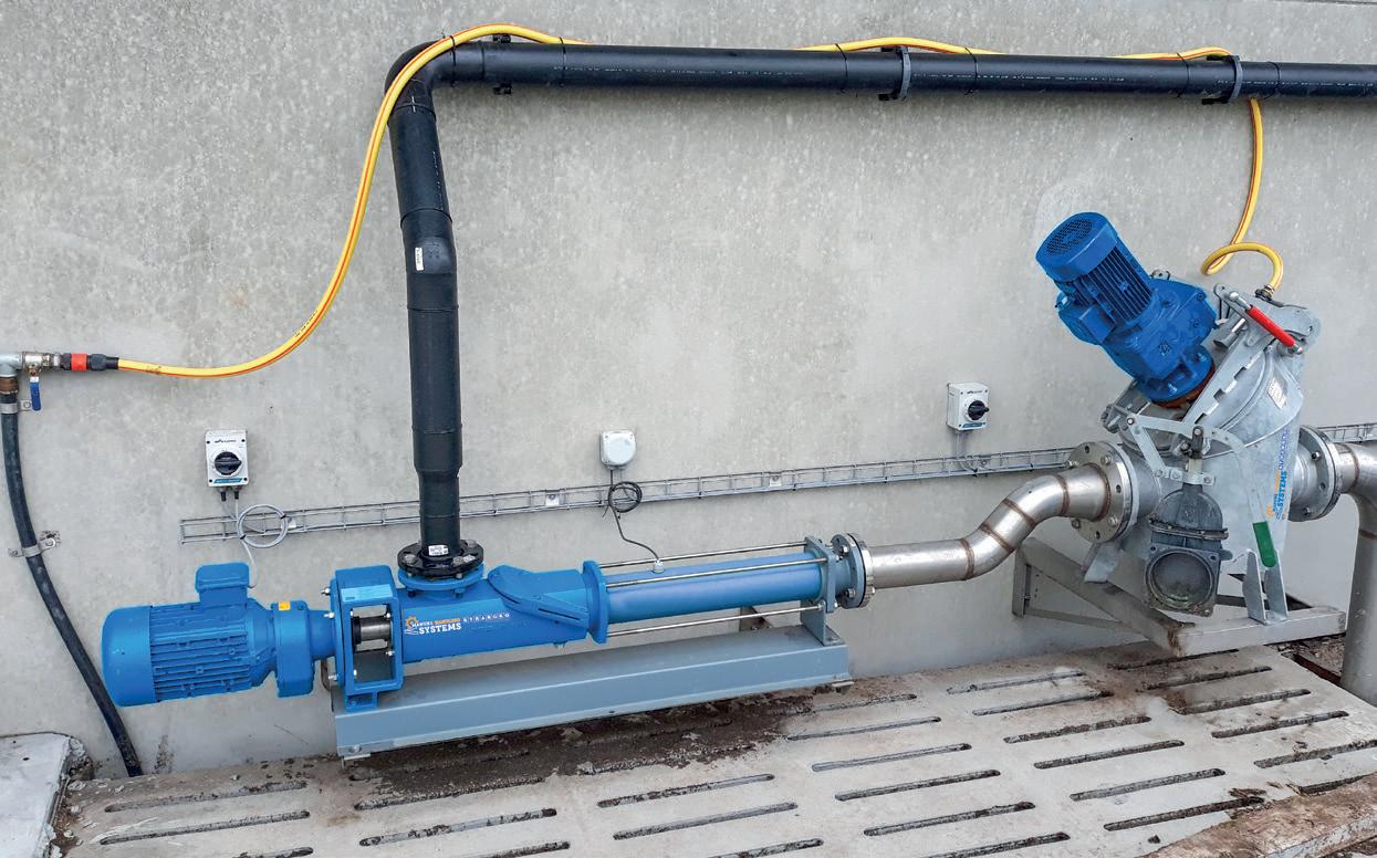 Die Gülle wird durch die Kolbenpumpe gepumpt und zum Trenner weitergeleitet.