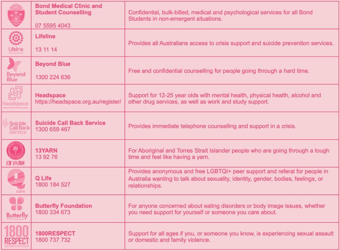 Feel free to submit feedback, queries, or suggestions around how we can improve wellbeing here at Bond by sending an email to wellbeing@bond.edu.au