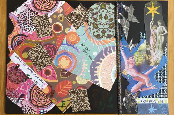 • Making a collage using images to express ourselves in a visual way, exploring who we are as people not just patients – it gave us a chance to express ourselves in a new creative way.