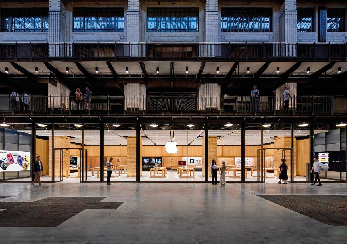 Aπό το 2014 η Apple συνεργάζεται με το βρετανικό γραφείο Foster + Partners για τον σχεδιασμό εμβληματικών Apple Stores σε όλο τον κόσμο, συνδυάζοντας την ανθρωποκεντρική προσέγγιση του τεχνολογικού κολοσσού με τον αειφορικό σχεδιασμό των αρχιτεκτόνων.