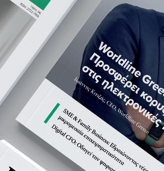 ΤΙΜΗ: 9€ ISSN: 2732-7159 ΙΟΥΝΙΟΣ 2023 028 Ο ψηφιακός µετασχηµατισµός αλλάζει καθοριστικά τις λογιστικές υπηρεσίες Θεώνη Αλαµπάση: Η ενίσχυση της κουλτούρας πληρωµών αποτελεί στοίχηµα το οποίο όπως φαίνεται κερδίζεται 24 18 Fintech: Μετασχηματίζοντας την οικονομική διεύθυνση