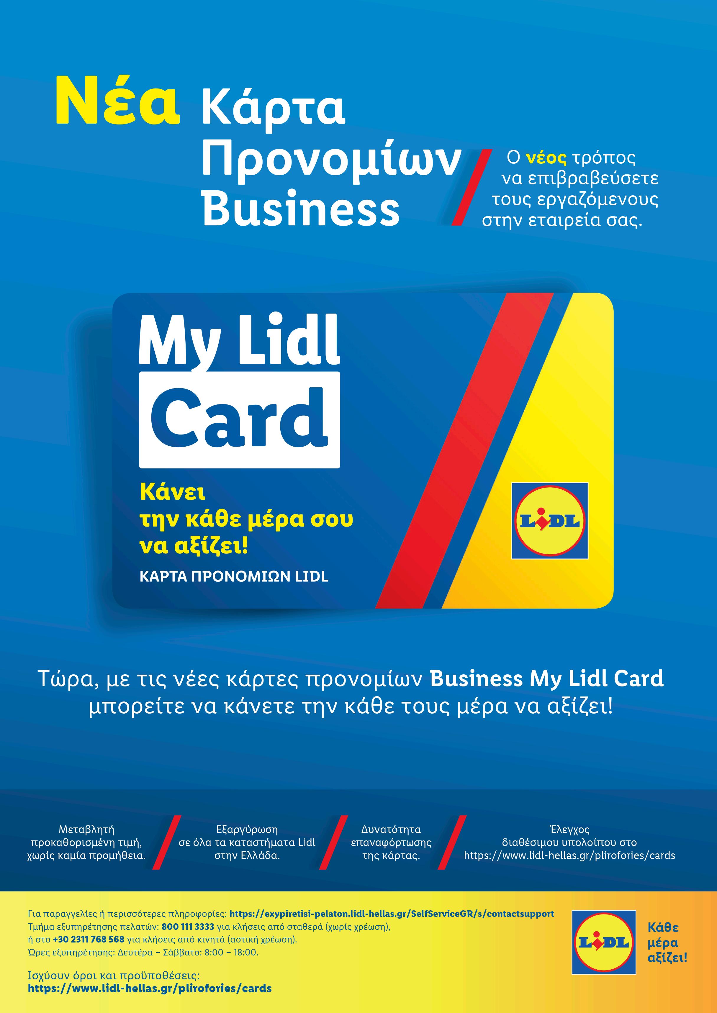 f Στοιχεία επικοινωνίας: Για την παραγγελία Καρτών Προνομίων Business, υποβάλετε το αίτημά σας εδώ: https://exypiretisi-pelaton.lidl-hellas.gr/ SelfServiceGR/s/contactsupport.