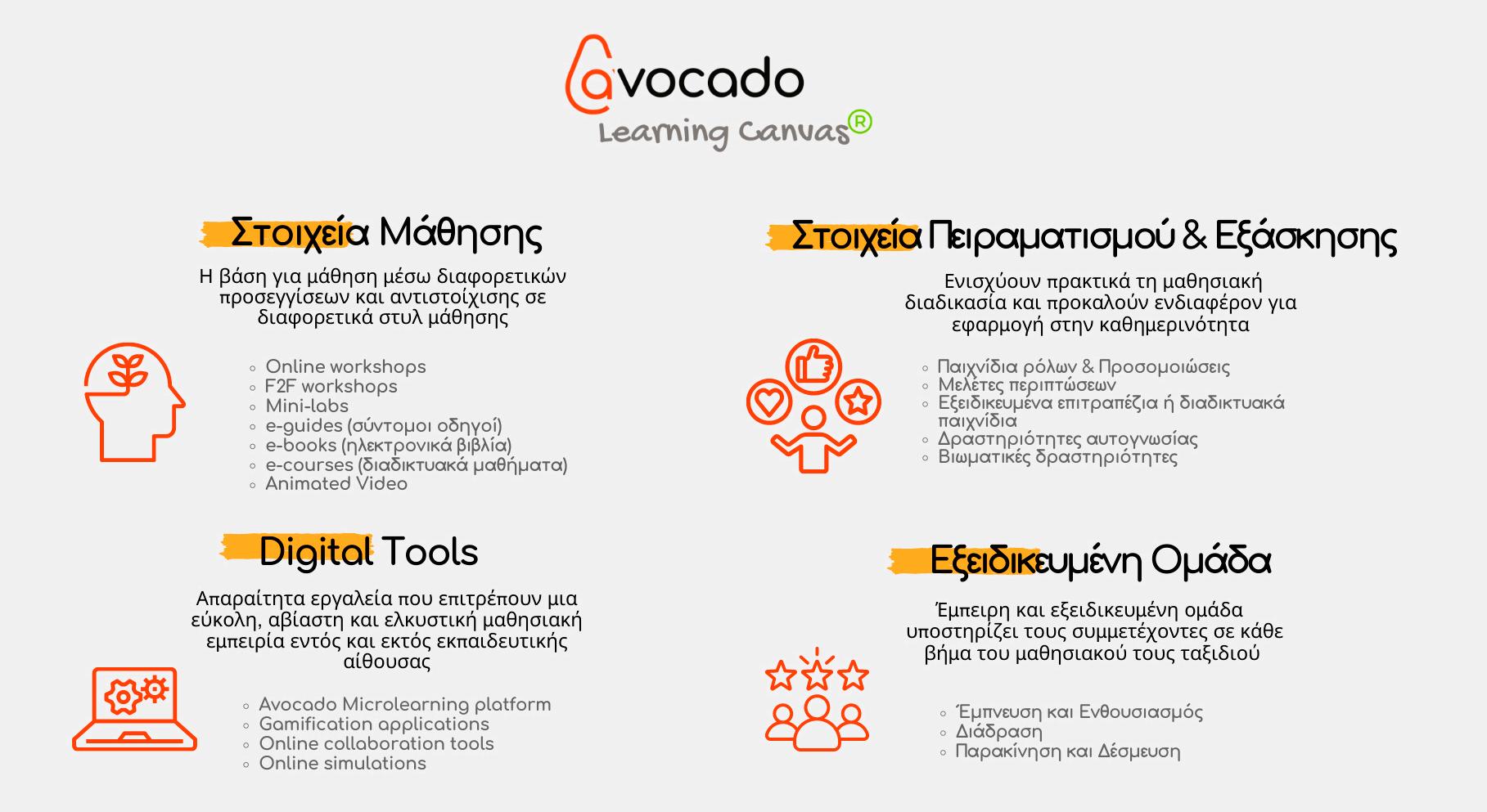 Η Avocado Learning Experiences δημιουργεί εμπειρίες εκπαίδευσης και ανάπτυξης σε θέματα Mindset & Life Skills (Growing) , Management & Leadership (Shaping), Customer experience & Sales excellence (Achieving), Teamwork & Culture Building (Together). Με μία φρέσκια, ευέλικτη και ανατρεπτική ματιά, με μία εξαιρετική ομάδα συνεργατών με αγάπη για αυτό που κάνουν και εμπειρία από την αγορά, σχεδιάζουμε για εσάς, έξυπνες και εφαρμόσιμες λύσεις που παρέχουν αξία.