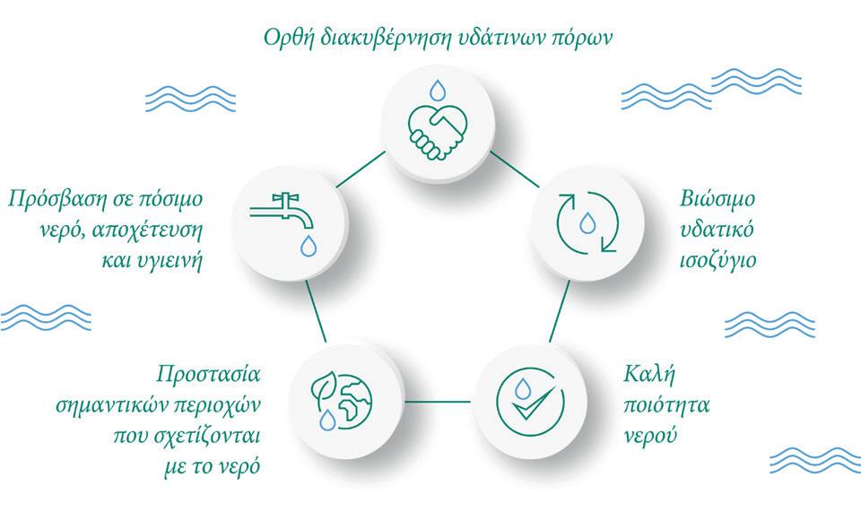 νερό πηγής, εγκαταστάσεις επεξεργασίας, δίκτυα διανομής, αποχετεύσεις, εκροές και ύδατα υποδοχής.