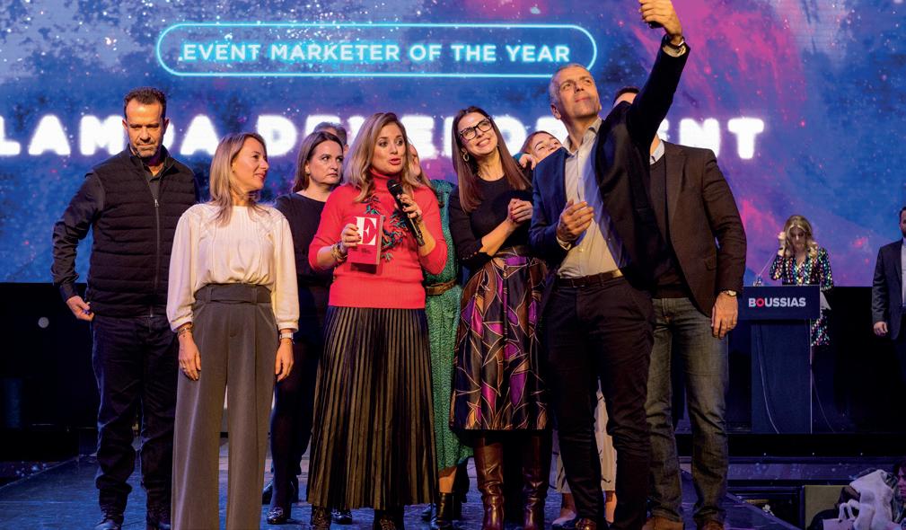 Events Παρουσία 380 στελεχών, εκπροσώπων θεσμικών φορέων και εκπαιδευτικών ιδρυμάτων από τον κλάδο της διοργάνωσης εκδηλώσεων και σε κοινή τελετή με τα Venue Awards, πραγματοποιήθηκε η απονομή των βραβείων Event Awards 2022 -αμφότερα διοργανώσεις της Boussias. Έχουν δε στόχο να προβάλλουν την καινοτομία και τη δημιουργικότητα ενός κλάδου, ο οποίος συνεχώς προσαρμόζεται και εξελίσσεται στις νέες συνθήκες που διαμορφώνονται. Ειδικότερα, τα Event Awards πραγματοποιούνται για έβδομη χρονιά και έχουν καθιερωθεί ως η μεγάλη συνάντηση των δημιουργών εκδηλώσεων. Η τελετή απονομής πραγματοποιήθηκε την Τετάρτη, 7 Δεκεμβρίου, στο Teatro Athens, με παρουσιάστρια την ηθοποιό Τζένη Θεωνά. Τα βραβεία πραγματοποιήθηκαν με την τιμητική υποστήριξη του HAPCO & DES. EVENT AWARDS 2022 ΕΛΑΜΨΑΝ Η ΚΑΙΝΟΤΟΜΙΑ ΚΑΙ Η ΔΗΜΙΟΥΡΓΙΚΟΤΗΤΑ! Σε εορταστικό κλίμα πραγματοποιήθηκε η τελετή απονομής των Event Awards 2022, επιβραβεύοντας τον κλάδο της διοργάνωσης εκδηλώσεων. Σε μια χρονιά όπου το industry επιστρέφει στις διοργανώσεις με φυσική παρουσία και με ρεκόρ υποψηφιοτήτων, τα φετινά βραβεία ανέδειξαν σημαντικά projects, τα οποία σηματοδοτούν την εξέλιξη και προσαρμογή του κλάδου στις νέες συνθήκες. Της Κατερίνας Κυρίτση, kkyritsi@boussias.com 22 MarketingWeek • 26.12.2022 - 22.01.2023