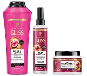 Το Gliss, ο ειδικός στην επανόρθωση των μαλλιών από το Schwarzkopf, ξανασυστήνεται με νέα προϊόντα και μοντέρνα συσκευασία, παρουσιάζοντας νέας γενιάς φόρμουλες υψηλής απόδοσης, για πιο δυνατά μαλλιά με υγιή όψη. Για πρώτη φορά στην αγορά της ευρείας διανομής, το Gliss ενσωματώνει σε όλες τις συσκευασίες των προϊόντων του δείκτη περιποίησης τριών επιπέδων, ώστε να επιλέγουν οι καταναλωτές εκείνο που τους ταιριάζει περισσότερο. Τα σαμπουάν περιέχουν ενεργά συστατικά φυσικής προέλευσης, όπως κερατίνη και ένα νέο υψηλής ποιότητας άρωμα, οι μάσκες είναι ενισχυμένες με το σύστημα HaptIQ από το Schwarzkopf για εντατική επανόρθωση και τα express repair spray conditioners προσφέρουν προστασία από τη θερμότητα έως και 230 °C –εφαρμόζονται σε στεγνά ή βρεγμένα μαλλιά.