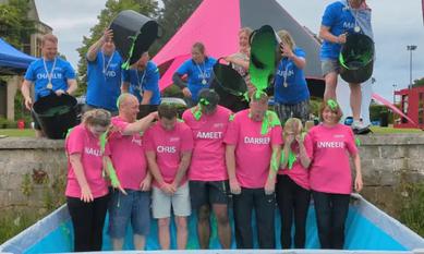 Throughout the event, Ameet who was part of the pink team, demonstrated exceptional courage and determination Highlights included him winning the reptile challenge, braving a python encounter, excelling in the eating challenge with marinated pickled cabbage, and competing fiercely in the final round of archery, assault courses, and skill challenges. Despite the Blue team winning the day, Ameet was honoured as the top fundraiser, shortly before being covered in, coincidently, “Boutique Care Homes’ signature green” gunge