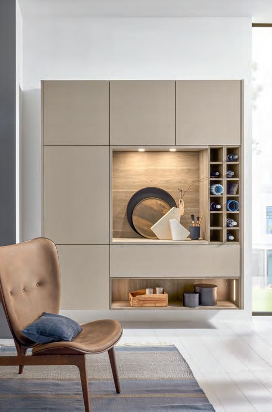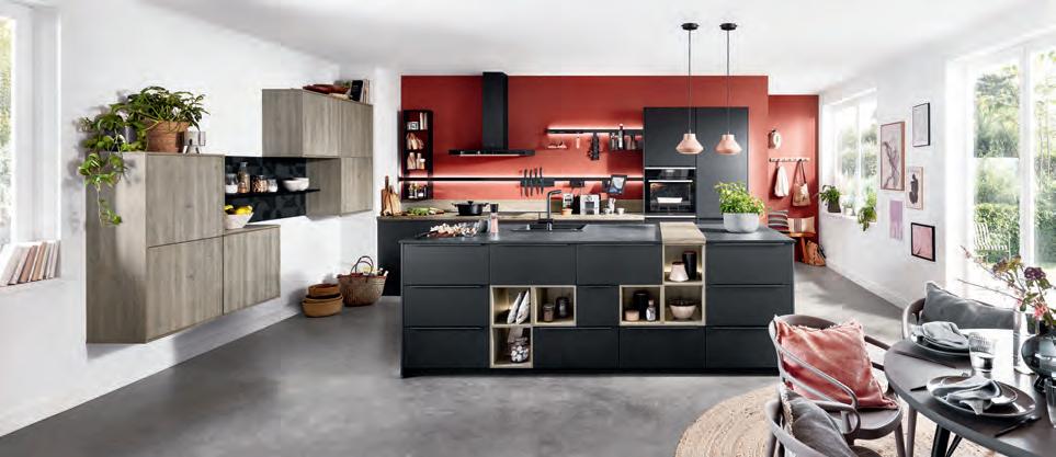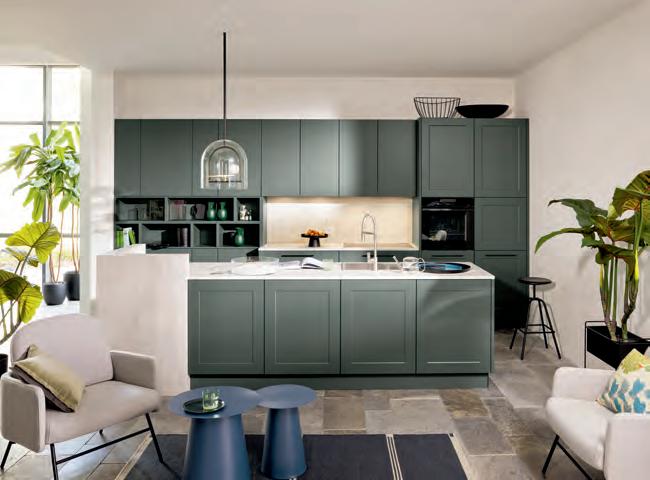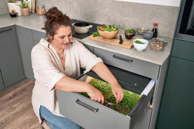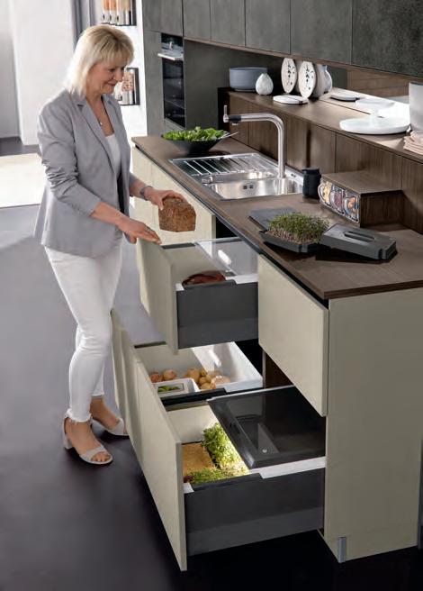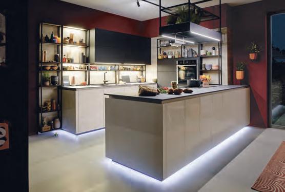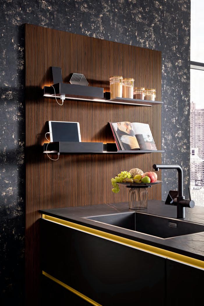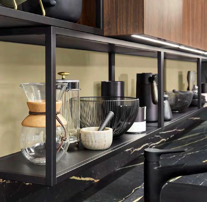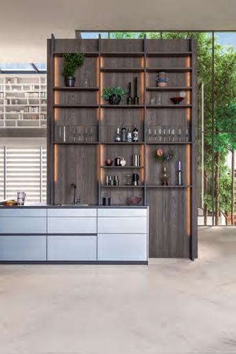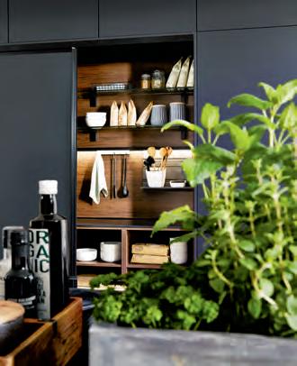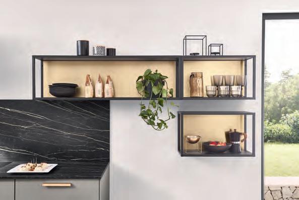 „ In moderne keukens worden planken en kasten creatief gebruikt om decoraties en planten te showen.“