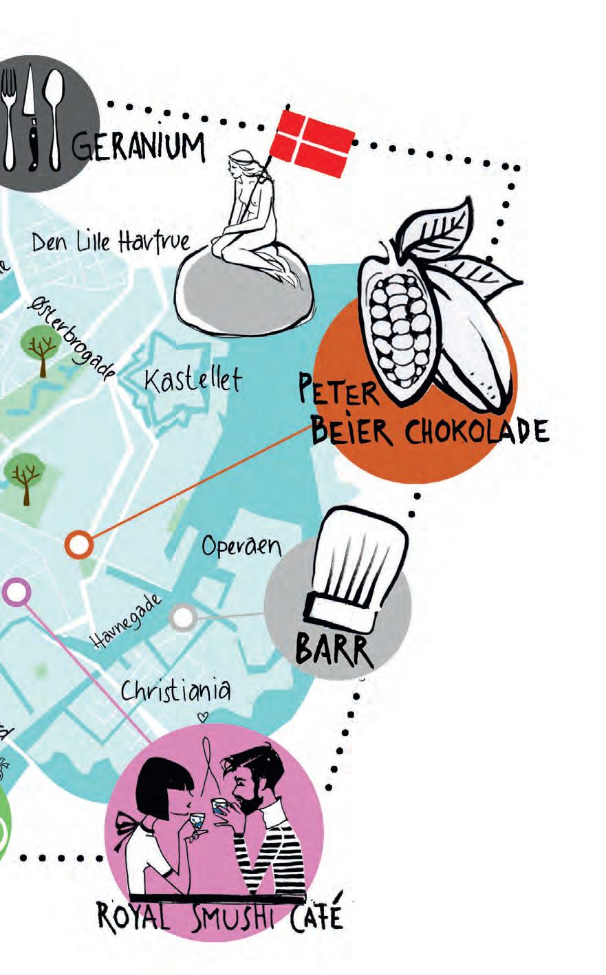 trekpleister geworden. Dit komt mede doordat je op vrijwel elke straathoek lekker eet en er niet alleen in de culinaire tempels fantastisch gekookt wordt. Zelfs de oude, vertrouwde hotdog smaakt verfijnd in Kopenhagen: Claus Christensen heeft de biologische hotdogkraam DØP „uitgevonden“. De afkorting staat voor „Den økologiske pølsemand“ – de biologische worstenman. Hotdogs helemaal hip: bij Rundetårn of op Amagertorv 31 staan mensen geduldig in de rij voor een biologische varkensknakworst met knoflook, een kaasworst met hooikaas of veganistische tofucrackers.