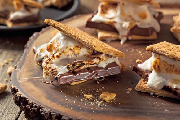 Geen kampvuur zonder S‘mores! De snackklassieker overtuigt door de onverslaanbare combinatie van geroosterde marshmallows, chocolade en koekjes.