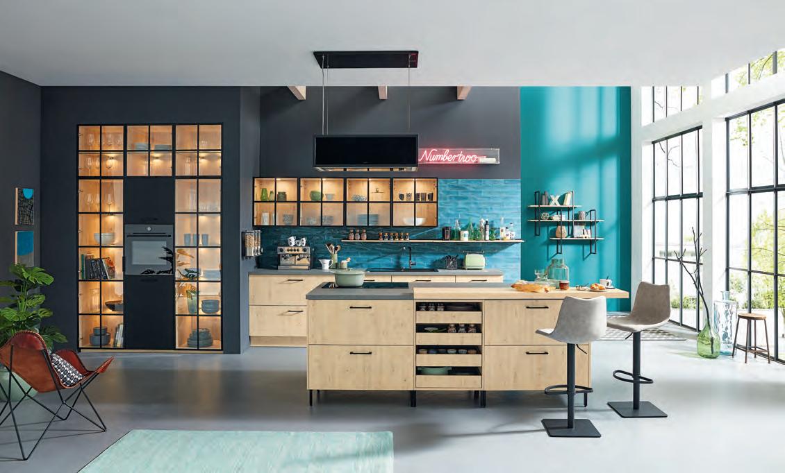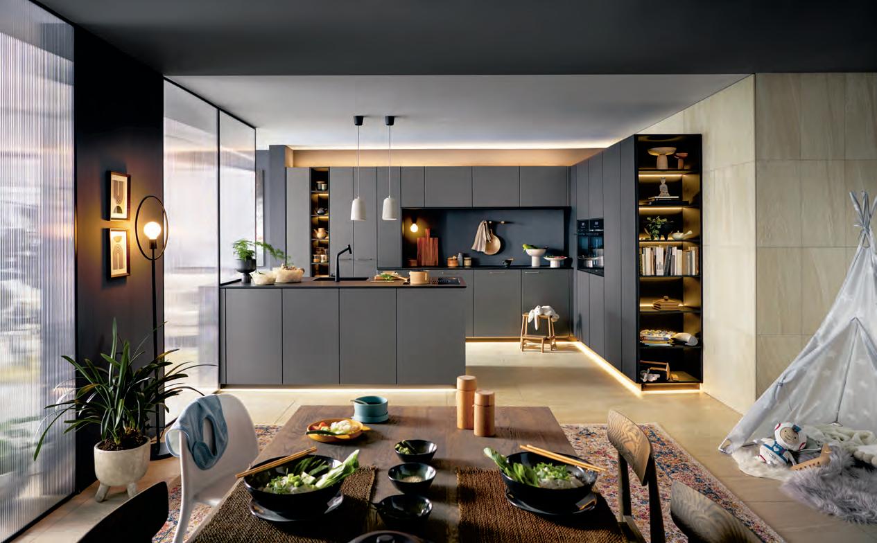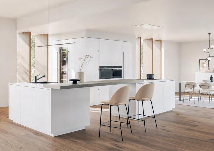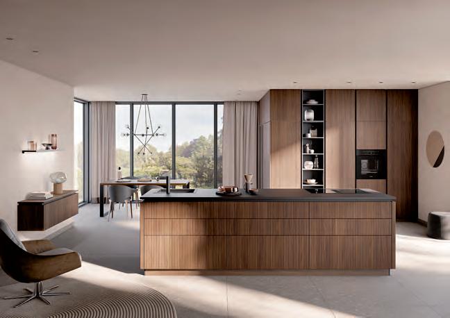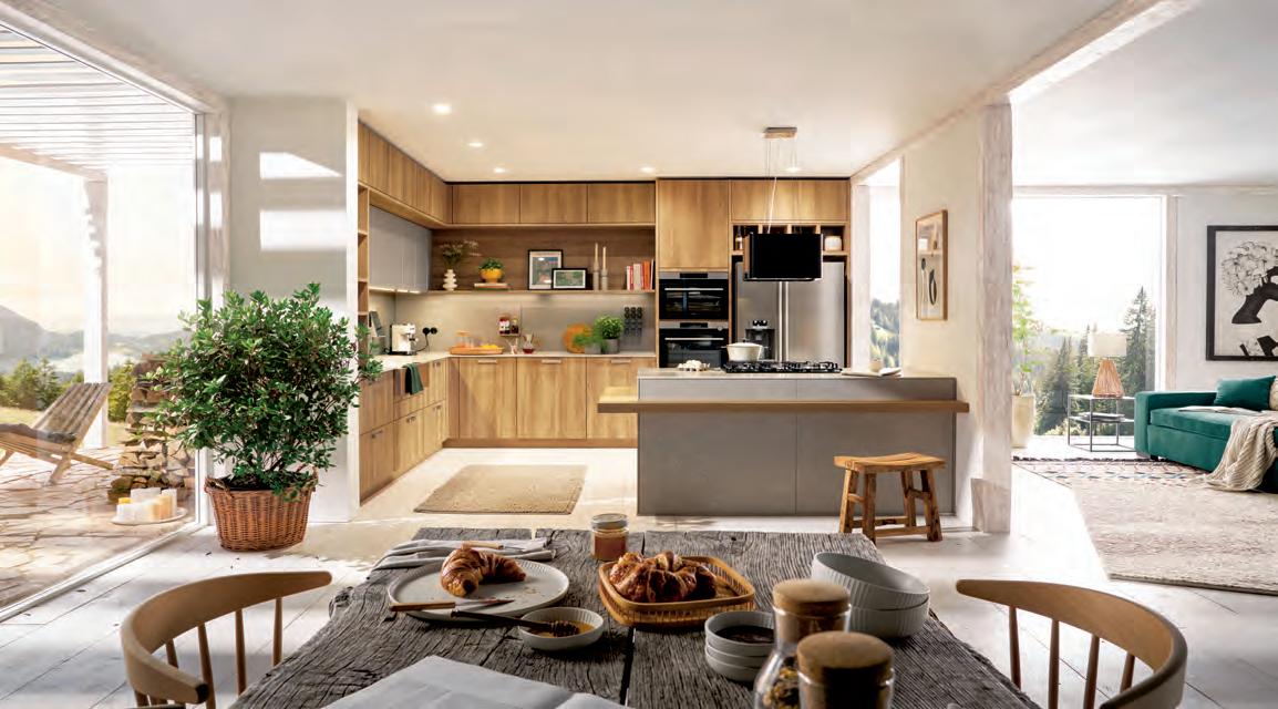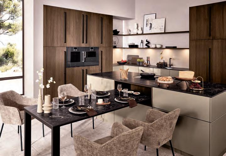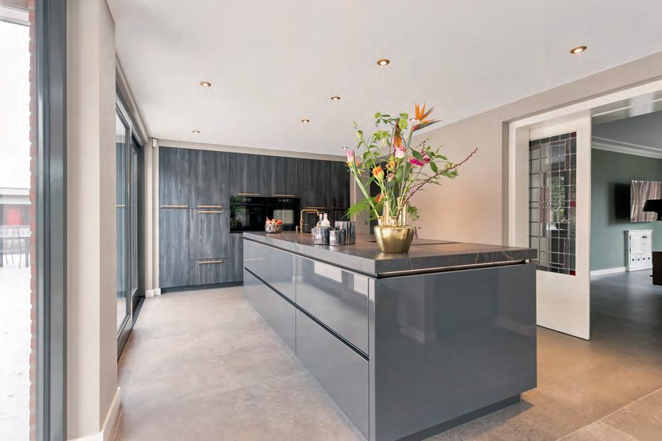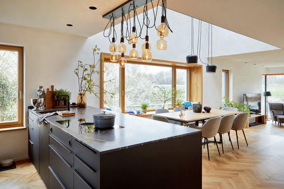 In deze stijlvolle keuken, die met de “Gouden Driehoek” bekroond werd, kunt u met een ruime blik koken.