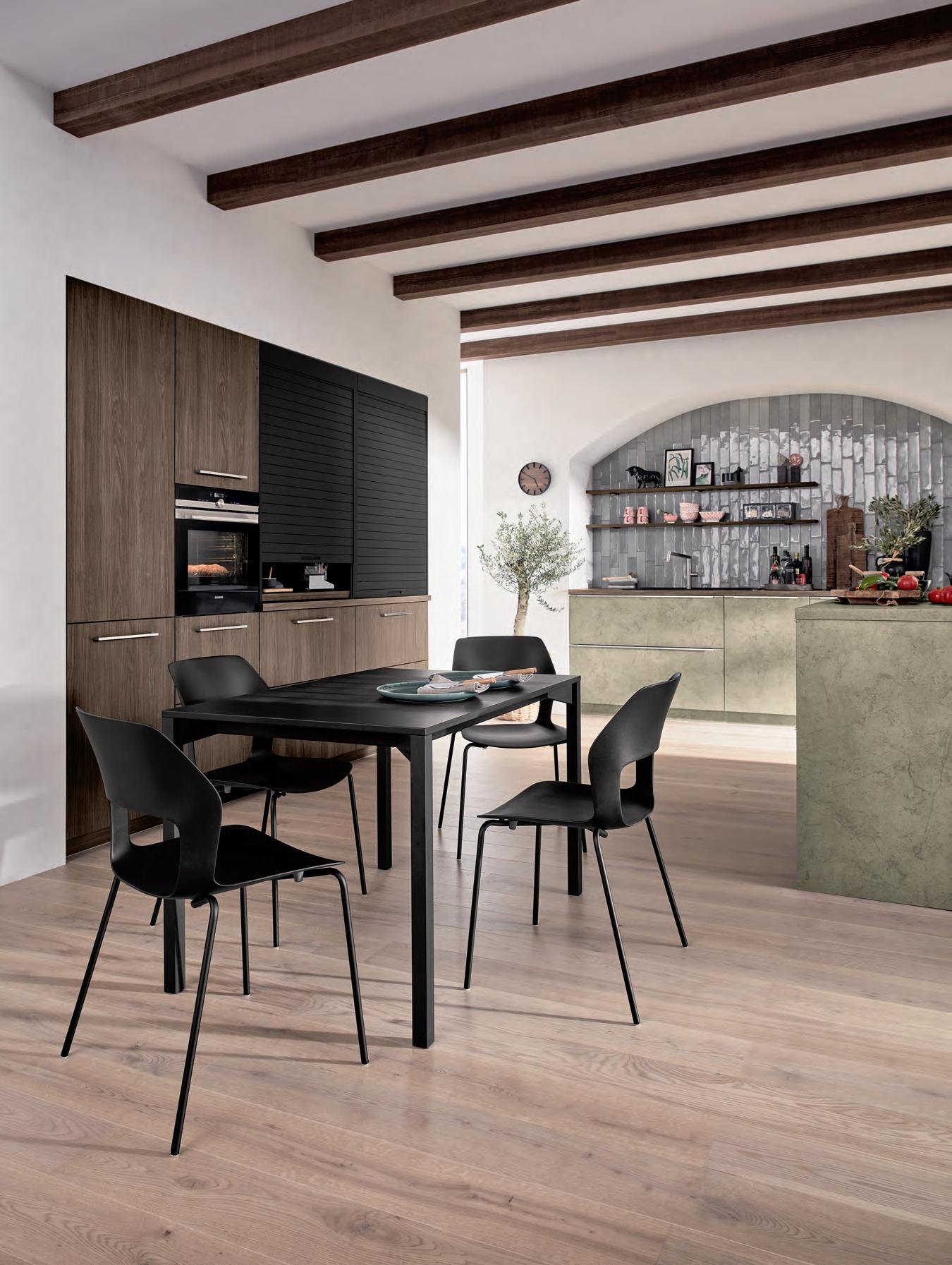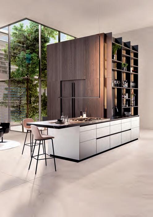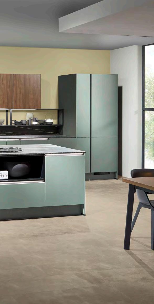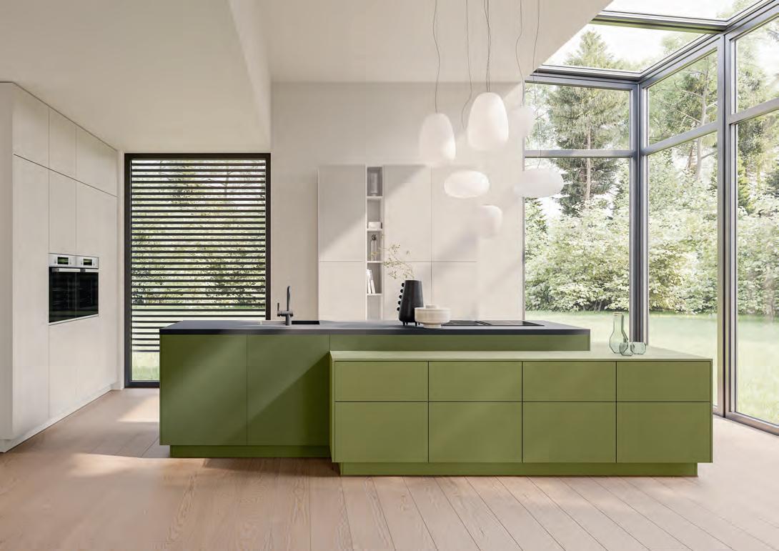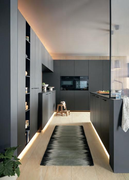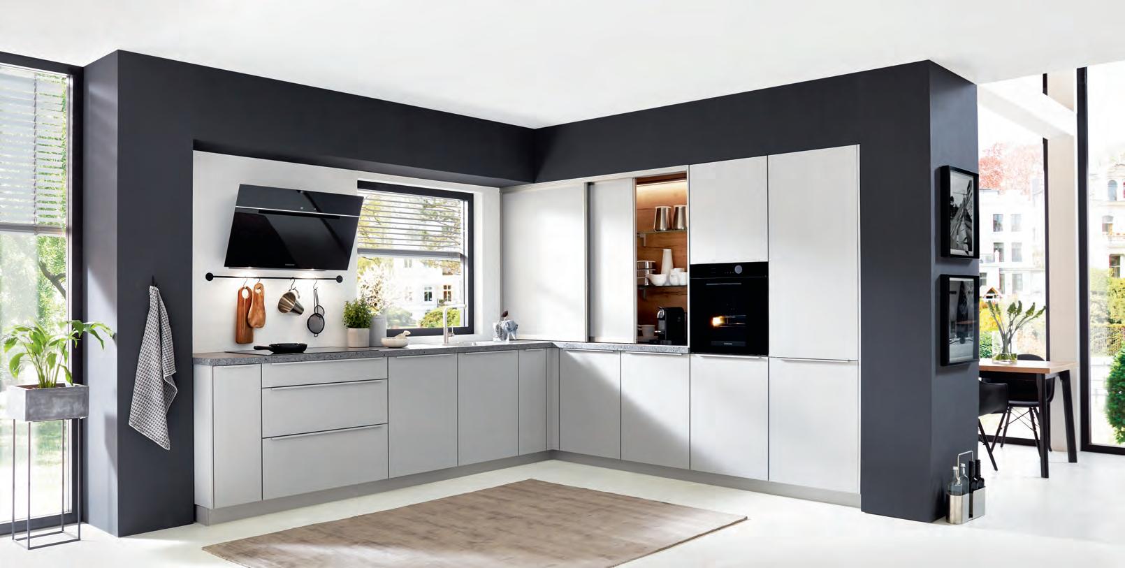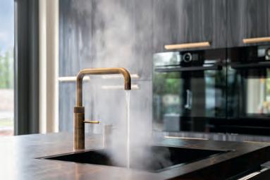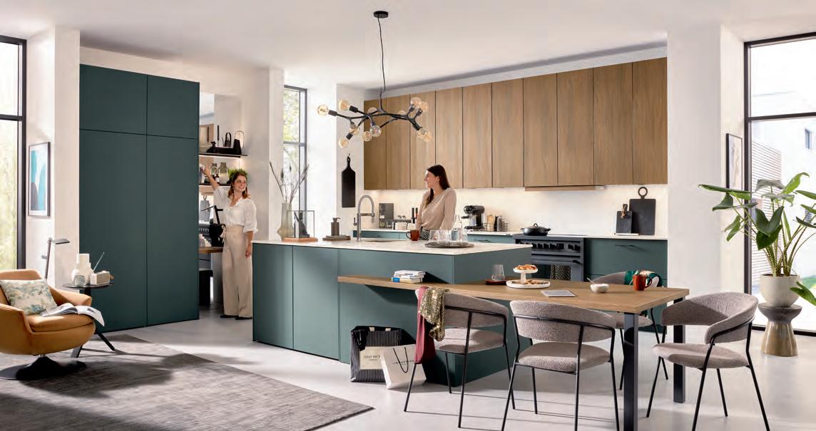 In deze stijlvolle keuken, die met de “Gouden Driehoek” bekroond werd, kunt u met een ruime blik koken.