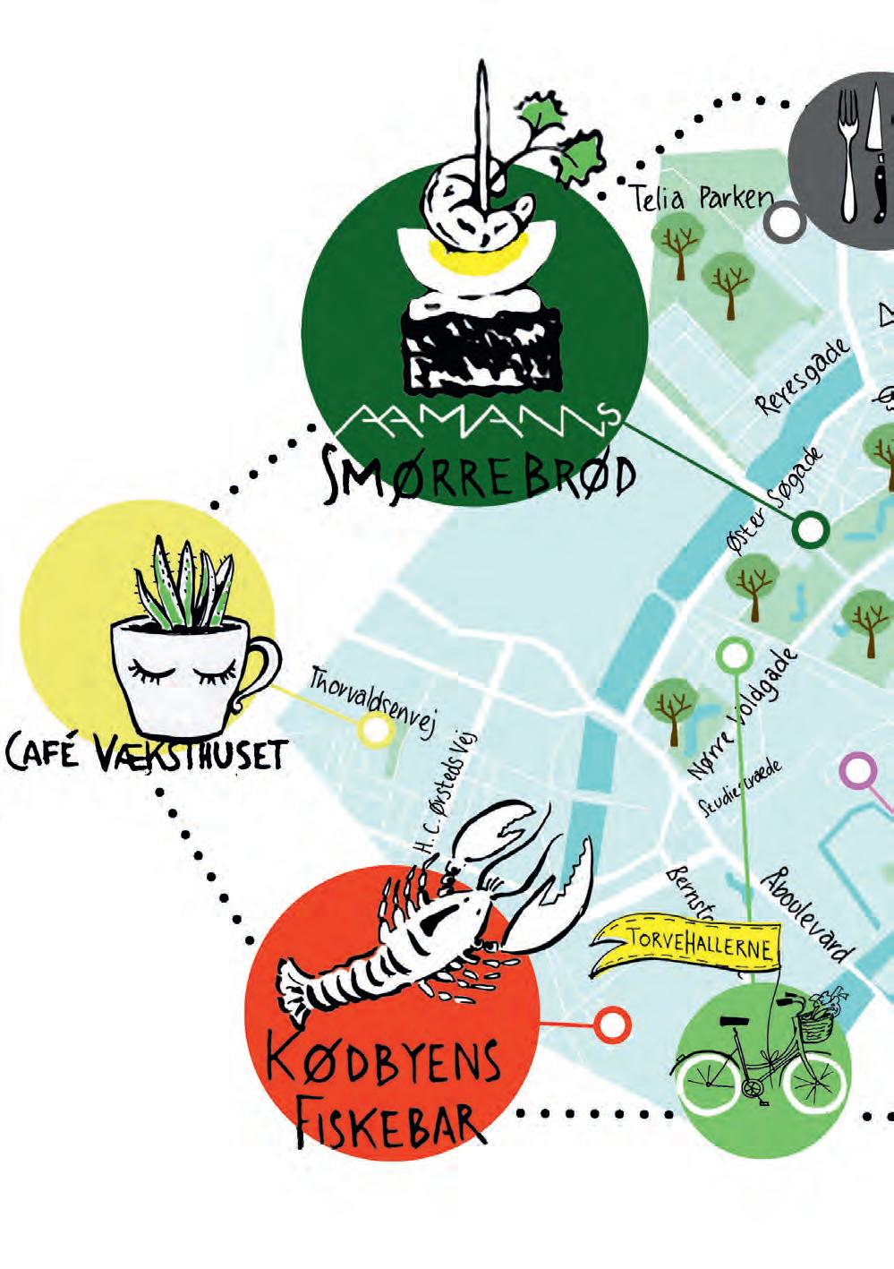 – dat is Kødbyens Fiskebar in het hippe Vesterbro, een van de populairste wijken van Kopenhagen. De beste zeevruchten, bereid volgens de nieuwe Deense keuken, met een uitgelezen selectie wijnen. Altijd druk, maar met een geweldige en informele sfeer (je voelt er nog steeds de historische flair van de oude vleeshallen).