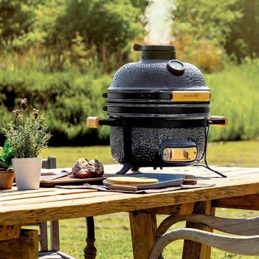 Zo is barbecueën voor iedereen leuk! „Ideaal voor kleine barbecues met onze buren. De middelgrote keramische BBQ-grill uit de Ron-serie van Berghoff (ca. 760 euro) is ideaal voor het bereiden van heerlijke gegrilde gerechten voor 4 tot 6 personen. De koepelvormige keramische schaal van de grill zorgt voor een perfecte temperatuurregeling, zodat het eten gelijkmatig gaar wordt.“