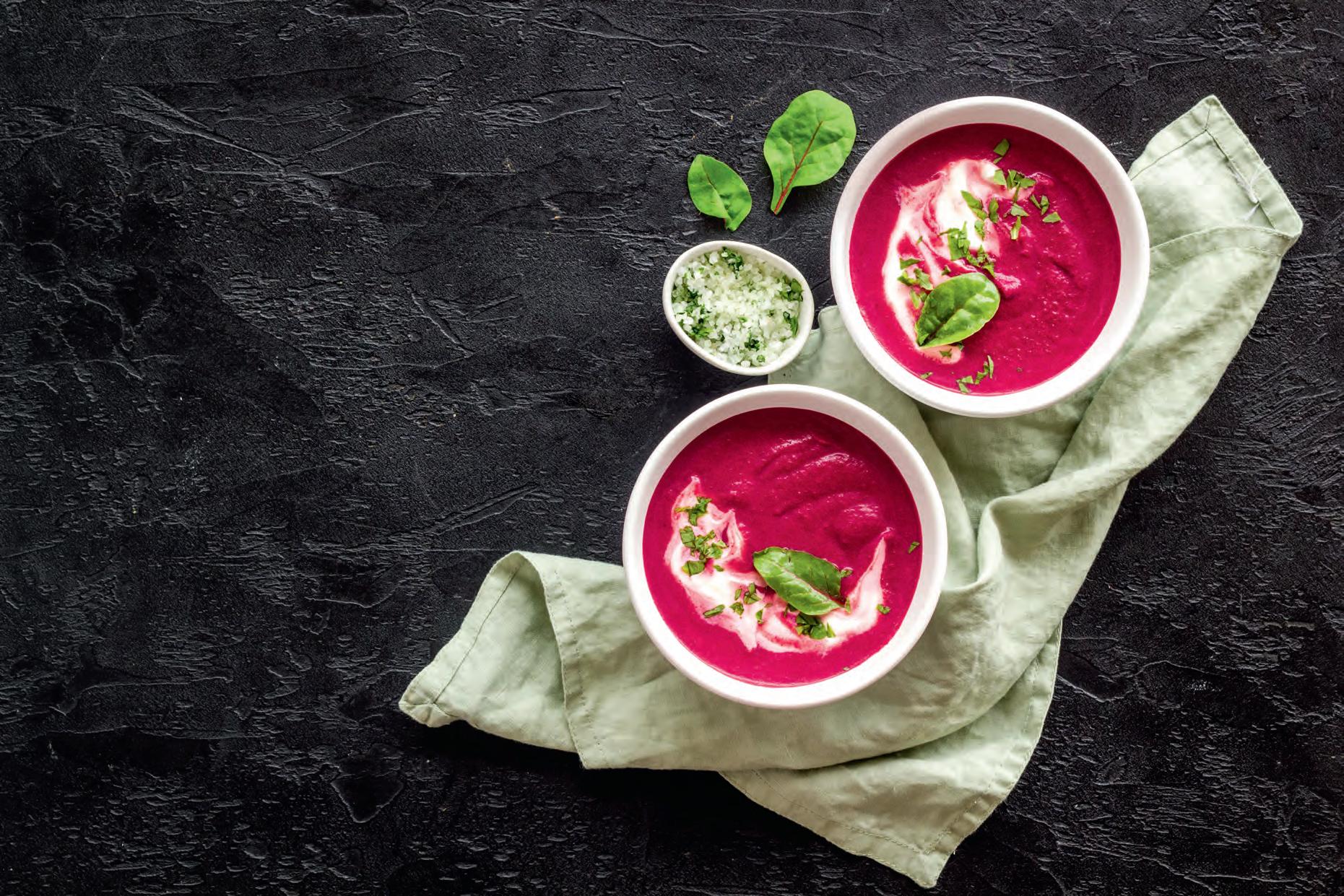 Klop bietensap, zure room en karnemelk door elkaar, breng op smaak met een beetje