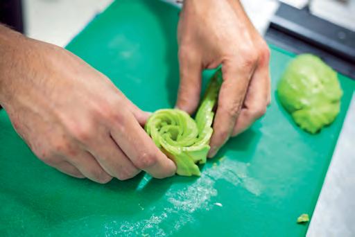 Verwijder de uiteinden van de courgettes. • Snijd de courgettes met een scherp mes of rasp in zeer dunne plakjes