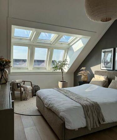 In de zomer kan je zolder flink opwarmen, maar met goede dakisolatie houd je al veel warmte en geluid buiten. Om de warmte nóg beter te weren, gebruik je lichte kleuren in je interieur en zet je liever planten dan meubels onder je dakraam. Een mooie Sansevieria of Aglaonema biedt schaduw en zuivert de lucht. Zo creëer je een frisse sfeer, een ruimtelijk gevoel én blijft je zolder lekker koel, zelfs op warme dagen! Zit de warmte al in huis? Zet de ramen dan ’s ochtends vroeg tegenover elkaar open en gebruik ventilatoren.