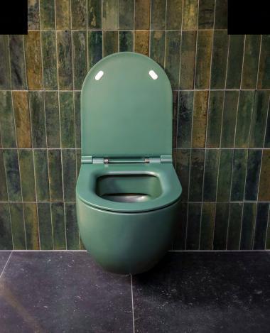 Het toilet is bij uitstek de plek om qua kleur en design wat meer uit de band te springen, en dit toilet is daar een prachtig voorbeeld van. De combinatie van diverse texturen en een groen kleurenpalet maakt het een echte eyecatcher.