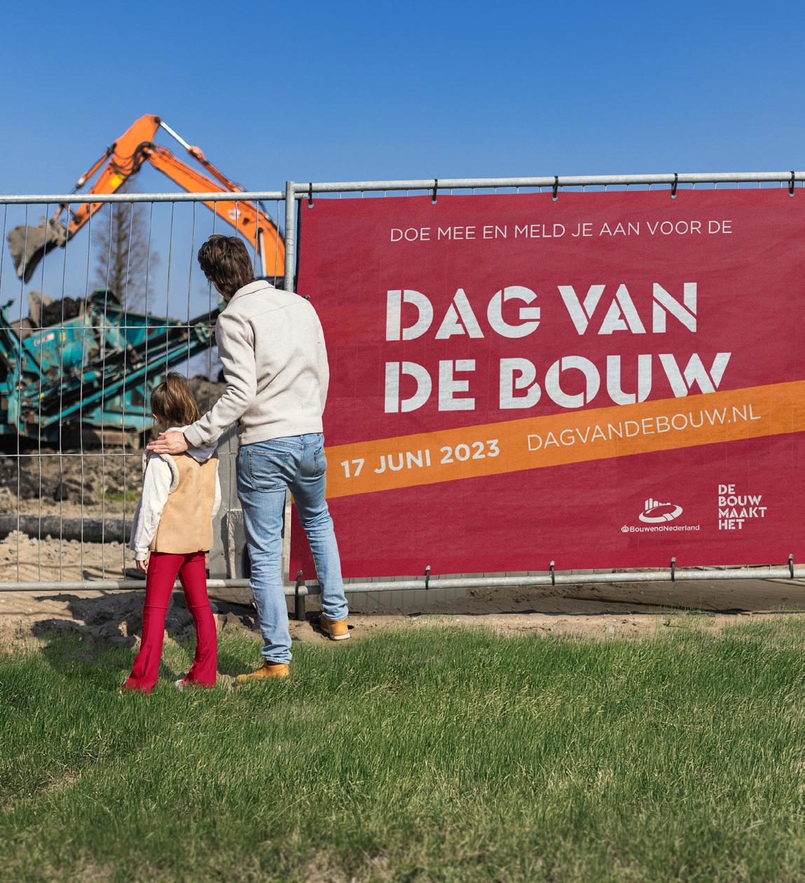 Op zaterdag 17 juni 2023 organiseren we de 16e Dag van de Bouw. Dé dag waarop we bouwplaatsen in heel Nederland openstellen voor publiek om te laten zien hoe mooi onze sector is.