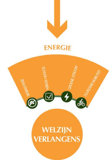 Door middel van vergroening van de leefomgeving kan er aan onderstaande verlangens gewerkt worden om die te realiseren. Op onderstaande afbeelding zijn de welzijn verlangens afgebeeld. Deze verlangens zijn vervolgens onder te verdelen in vijf thema’s die later gebruikt worden om de analyse en daarbij horende leidende principes op te stellen. Er zijn meer verlangens op te stellen, maar hier zijn de belangrijkste