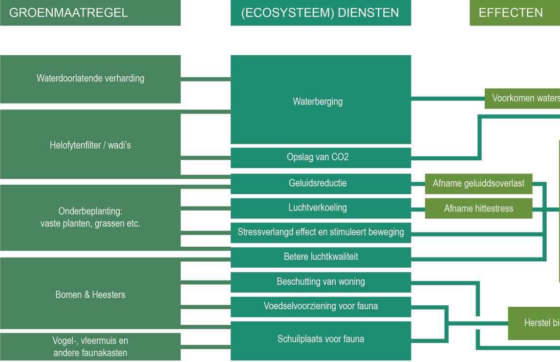 Volgens WHO dient men ten minste 1 hectare aaneengelsoten groen per buurt te hebben voor een voldoende waarde aan biodiverstiteit en welzijn van van de mens.