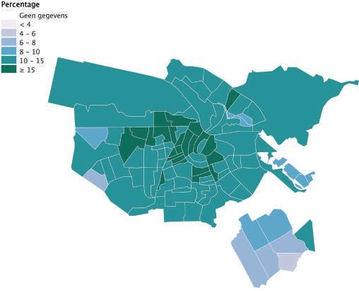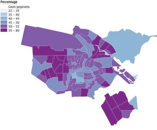 165 - 168 Oud-Zuid 70.400 IJburg, Zeeburgereiland 55.200 Centrum-Oost 53.900 Buitenveldert, Zuidas 51.200 De Aker, sloten, nieuw sloten 50.800 Centrum-West 47.300 Watergraafsmeer 45.600 Indische buurt, Oostelijk havengebied 43.200 De Pijp, Rivierenbuurt 42.500 Oud-West, De Baarsjes 42.400 Oud-Oost 39.700 Noord-West 39.000 Noord-Oost 38.300 Slotervaart 38.000 Oud-Noord 36.100 Osdorp: 35.500 Bijlmer-Oost 33.000 Bijlmer-Centrum 29.900 Sloterdijk, Nieuw-West 26.000 Bijlmer-West 25.200 Gaasperdam onbekend Geuzenveld, Slotermeer onbekend Bos en Lommer onbekend Westerpark onbekend