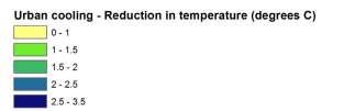 + Met name grote aaneengesloten groene ruimtes hebben de grootste impact tot verkoeling.