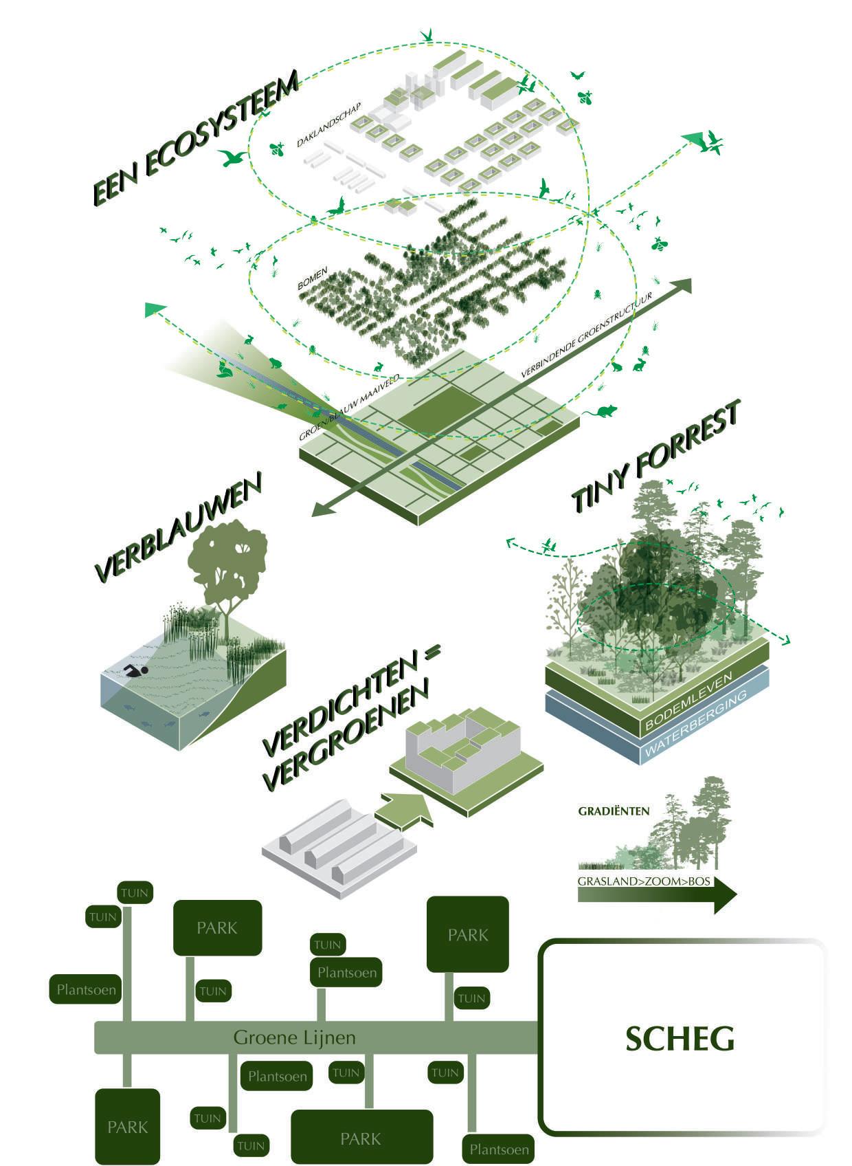 De grote opgaven zijn: wonen ( sociaal, inclusief, divers, vergrijzing), mobiliteit, energie, klimaatadaptief, biodiversiteit en economie. Vroeger werd elk vraagstuk apart aangepakt, maar dat is nu niet meer mogelijk. Middels dit ontwerpend onderzoek zal worden aangetoond dat het radicaal vergroenen van de stad een middel is om de vraagstukken te koppelen en integraal aan te pakken om zo het welzijn van mens, dier en plant in de stad te verbeteren.