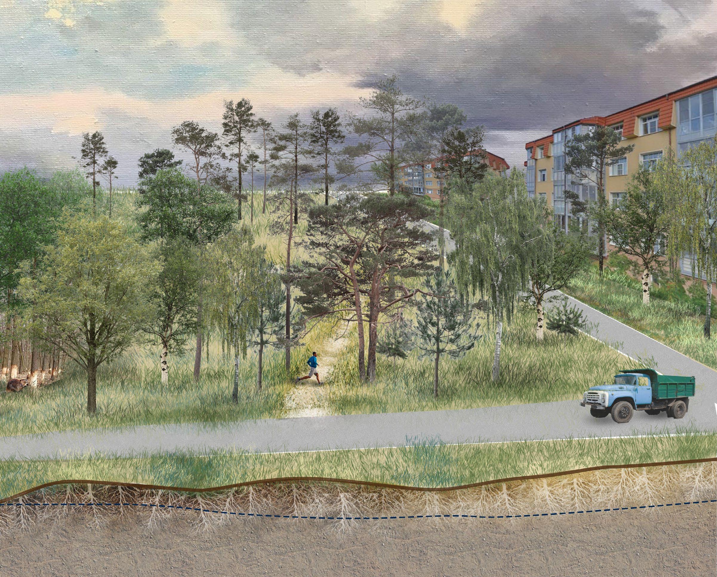 pioneers of the nature reserve will be those who live there or come to stay for a longer period of time. These are educators and stewards of the swamp, who will allow others to see how valuable and beautiful the landscape really is. Three main groups of pioneers have been selected that look at different aspects of the reserve. The dachniki are responsible for wilderness and plant conservation, the wellness for the health benefits of being in the swamp, and the artists for propagating the culture of the swamp to the world.
