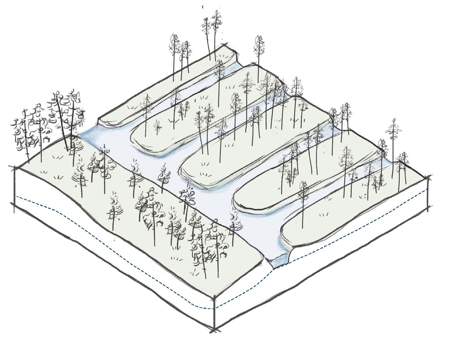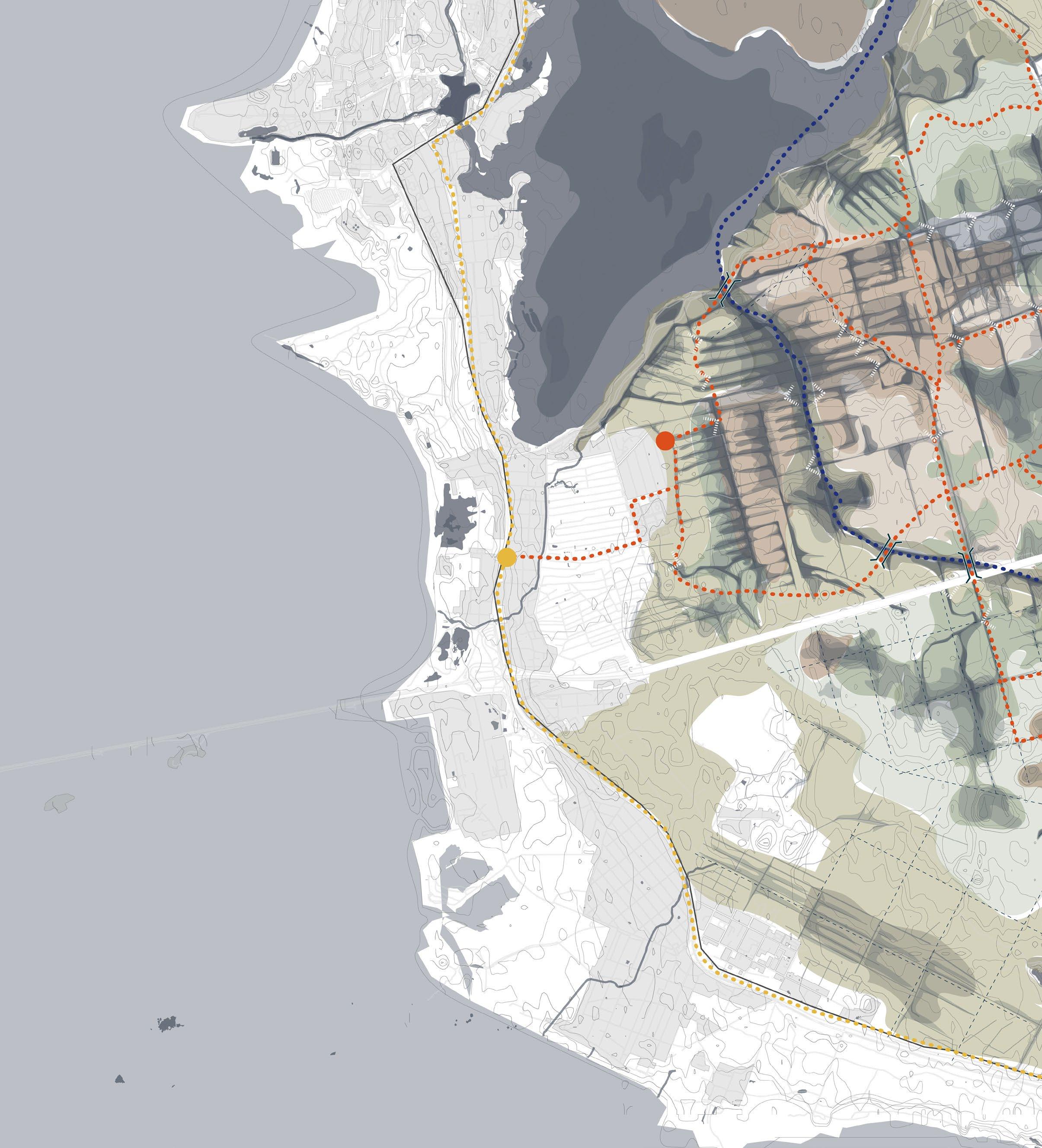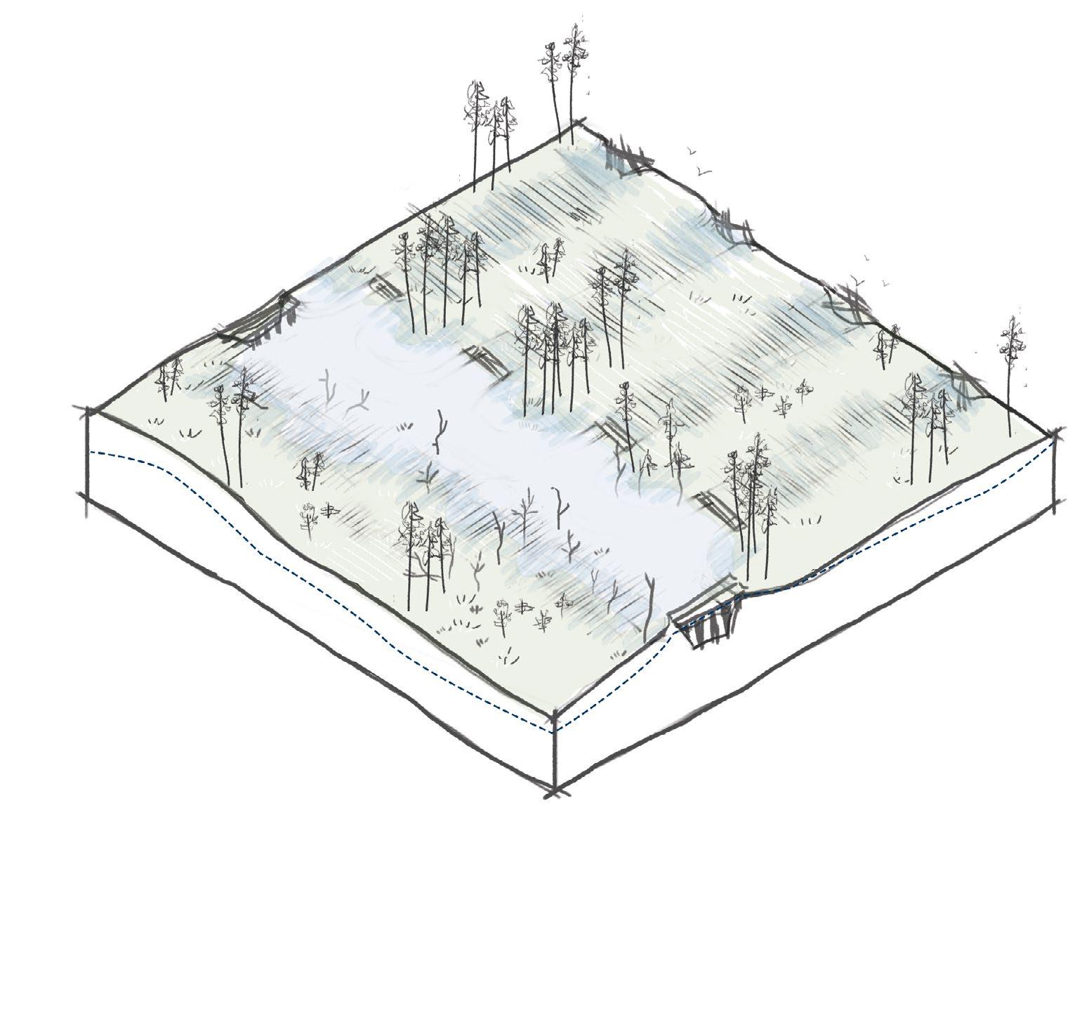 87 1 2 3 Site context layers 1 current water (drainage) system 2 infrastructure and human movement 3 soil types: 1 - existing borreal oligotrophic forest, 2 - existing mesotrophic forest, 3 - existing mesotrophic bog 1 2 3 0 20 60 120m