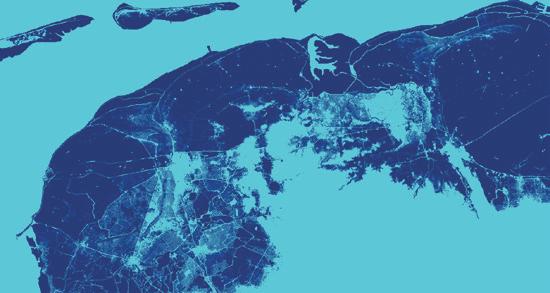 As the WELL can't be owned it is mandatory to respect a public use below 3m+ NAP. Floating elements are movable, buildings on pole are linked to a - imaginary- grid to serve permeability. Out of WELL-range the built environment can be 'fixed'.
