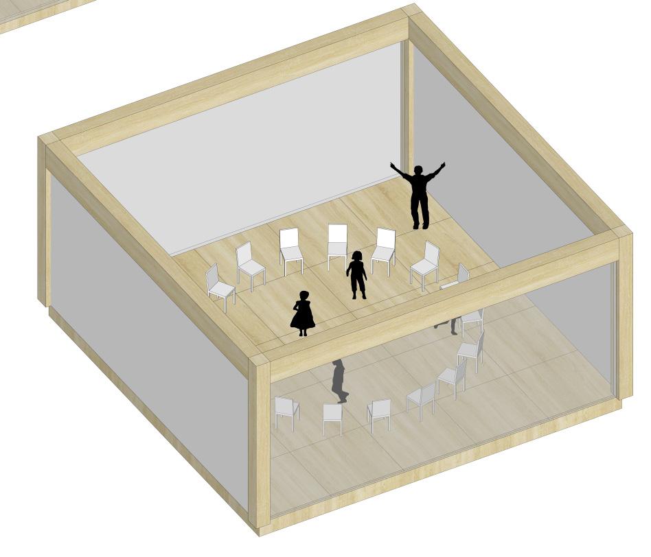 Door de panelen te openen wordt een soort openluchtschool gecreëerd, waardoor de gebruikers vanaf de verdieping een verbinding met het landschap aan kunnen gaan.