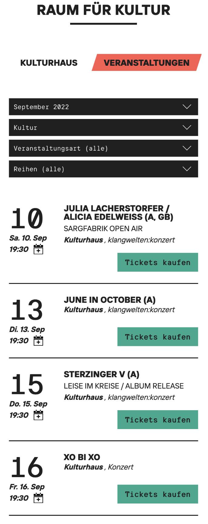 The cooperative is focused on cultural events (concerts mainly) and organizes them in the Kulturhaus and on the roof garden in summer time. In the Raum für Alle, a seminar room is available for seminars, workshops, meetings, exercise groups and therapeutic courses for up to 80 attendees (104m2). The space can easily be adapted to different uses and divided into separate rooms. In order to make room for the swimming area (The Raum für Baden), the cooperative decided to include the minimum parking spaces for cars. The bathhouse is publically accessible 24h/7.