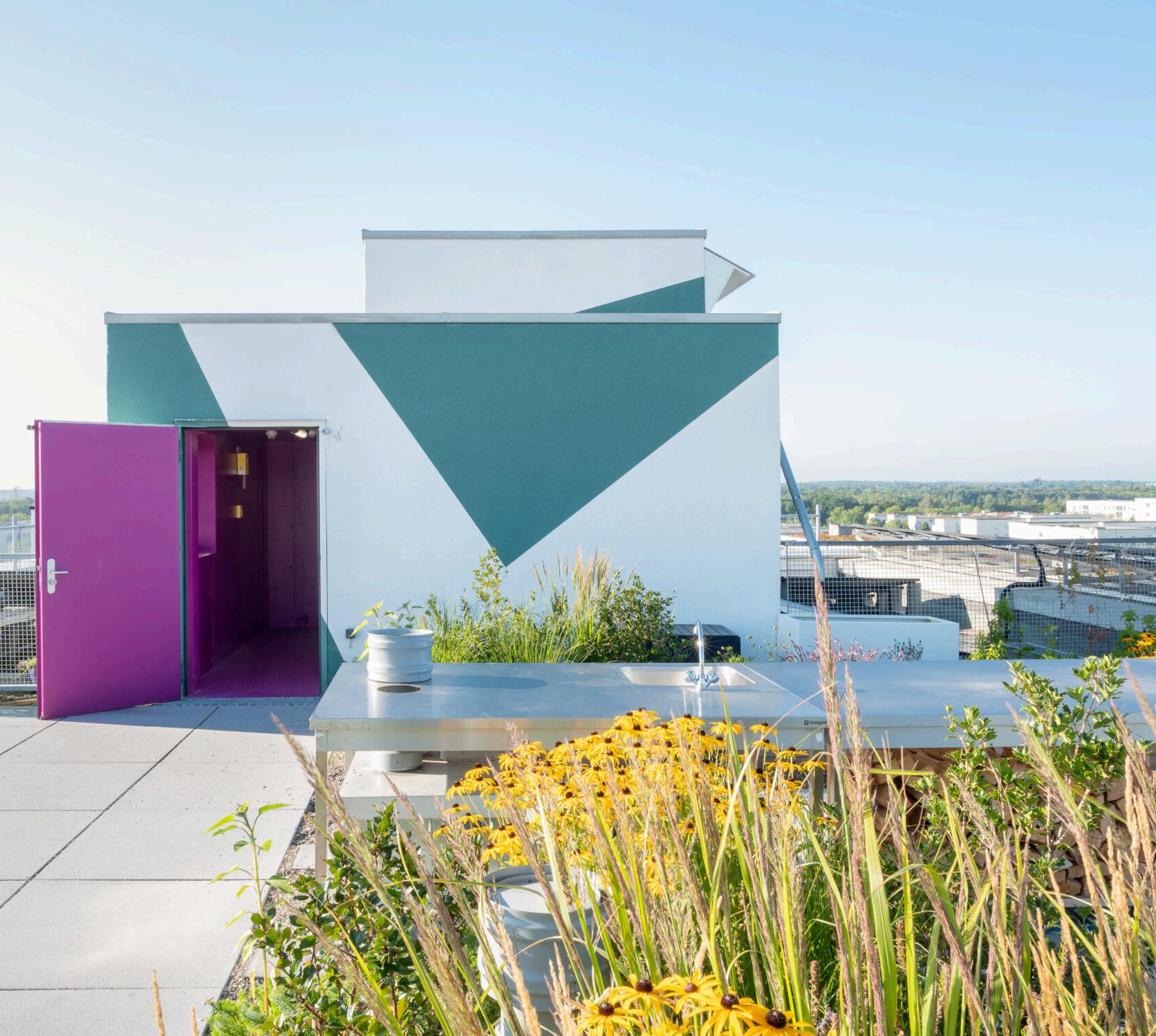 In cooperative housings, the rooftop is not reserved for the big private penthouse. In many examples, it plays an important role in the building. In most cases, it welcomes a shared space that can be just an accessible roof, or have a greenhouse, solar panels or a place to collect and reuse rainwater. And when the roof is not accessible, it can be covered by solar panels and/or an extensive roof.