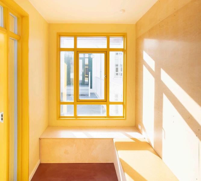 Last but not least, the building has a daycare center, the Raum für Kinderen. The aim was to create a learning environment in which pre-school children are encouraged to develop their creativity. About 60 children can attend the daycare center and enjoy the other facilities : the Die Kant_ ine vier zehn prepares for them a fresh meal everyday, they attend cultural events and a visit in the bathhouse is organized once a week. Funding comes from the city of Vienna's fund for children group.