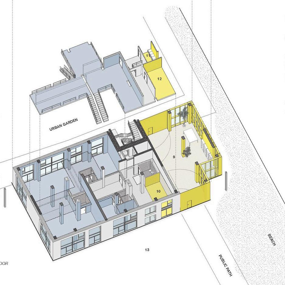 The plinth is where a lot of activities happen that involve people not necessarily living in the block. There is space for each floor/cluster, for working. One shared space for exhibitions, events, or to be used as a store. And one space is suitable to be used as a café; A meeting place for the building and the neighbourhood.