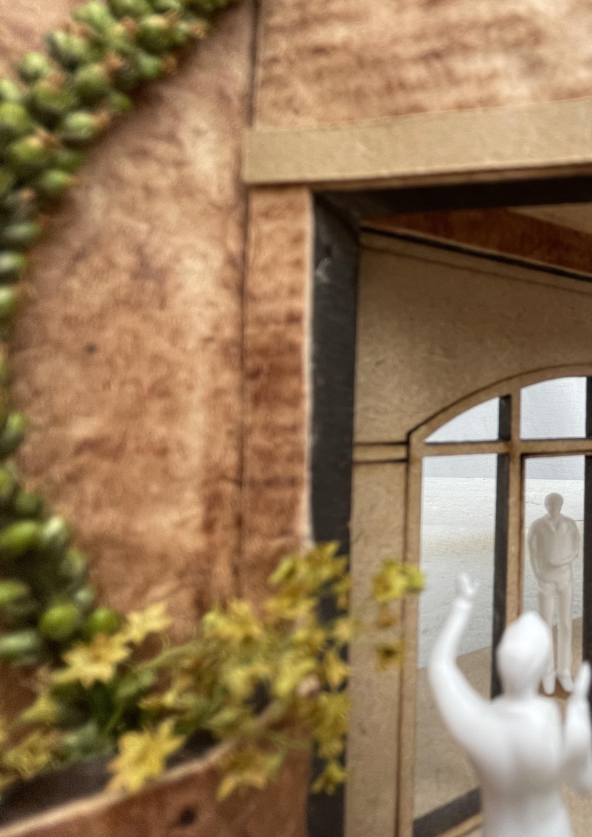 We merken op dat het kwadrant nog steeds inzet op zachte en ronde vormen van muren en alkoven. Al wordt er op enkele plekken afstand gedaan en wordt de vormgeving ruwer.