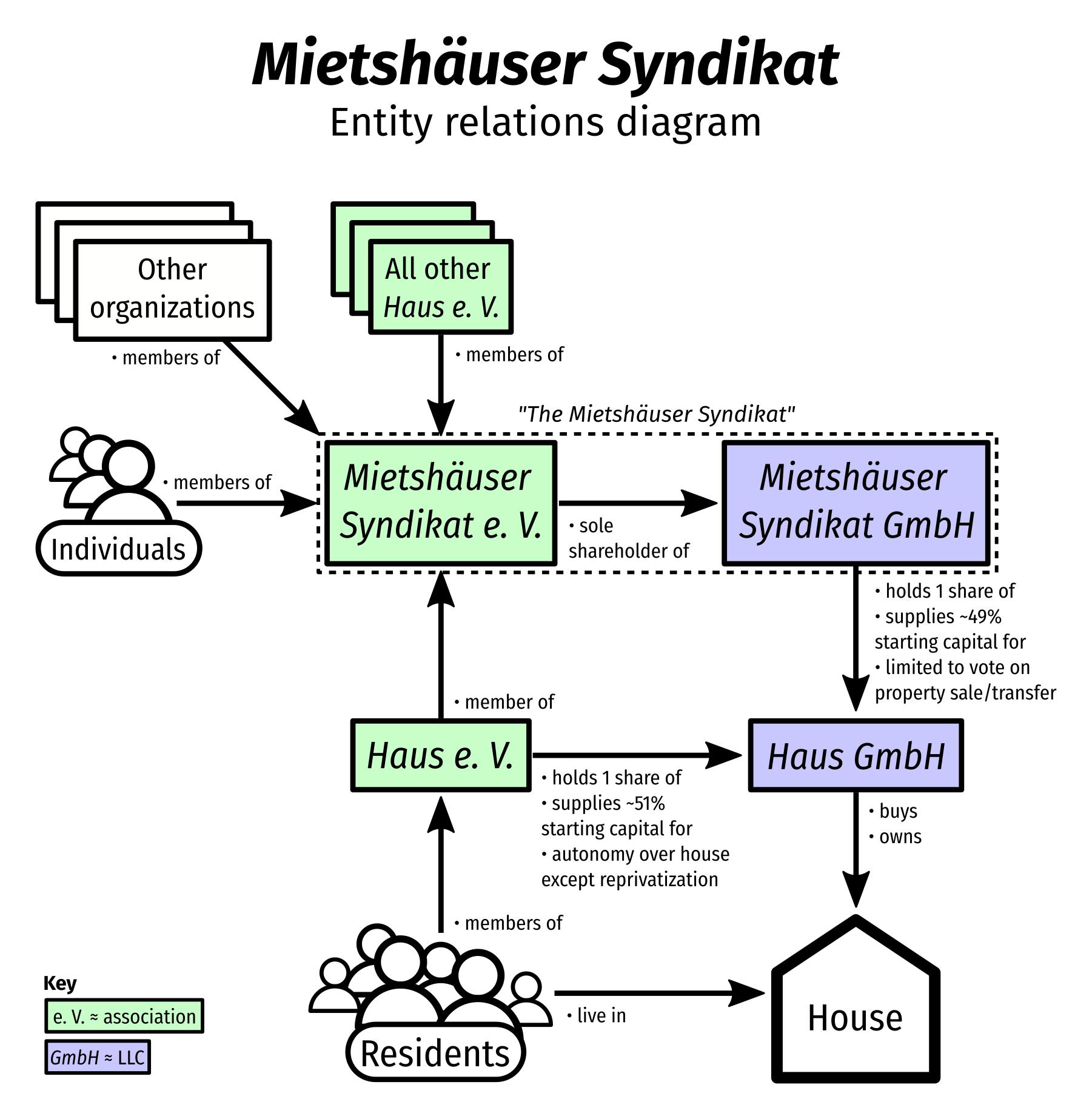 One organization that is already working with a model where co-Ownership is the key, is the German Mietshäuser syndicate. Here’s how they are organized: