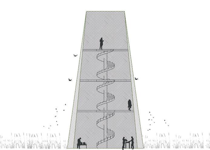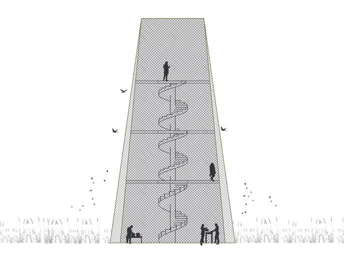 By the season, the Pavilion is started (again) as a frame, with the visitors’ intervention will it change and physically grow through time. The tower is a changing organism which requires consistent care from the community. Inward view will turn to outward while the curtains are slowly added.