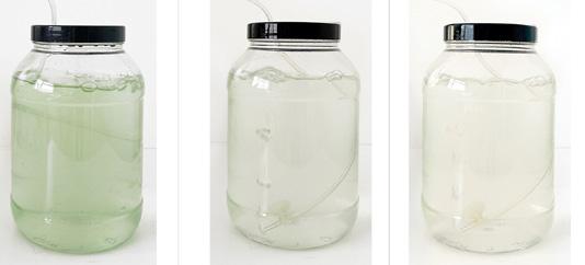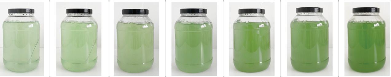 biomass collected T2: 3,2 kg/day production rate: very low gravelmass: filling: 60% note: dissolving rate is faster than filling rate. The algae gravel starts to turn into nutrition in the ground.