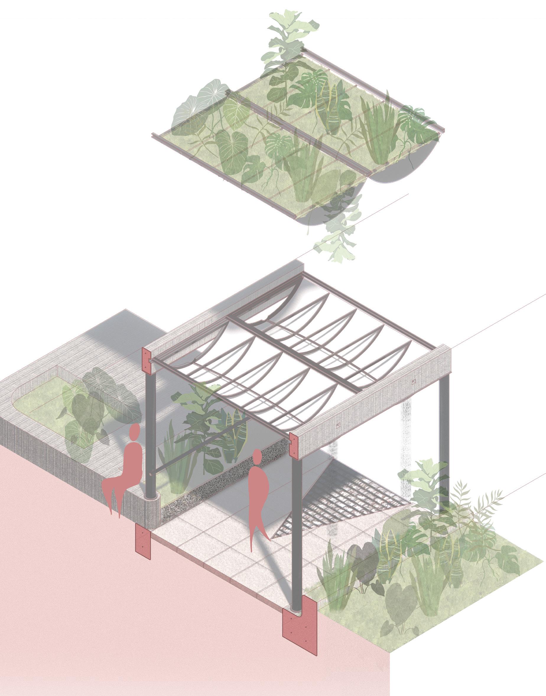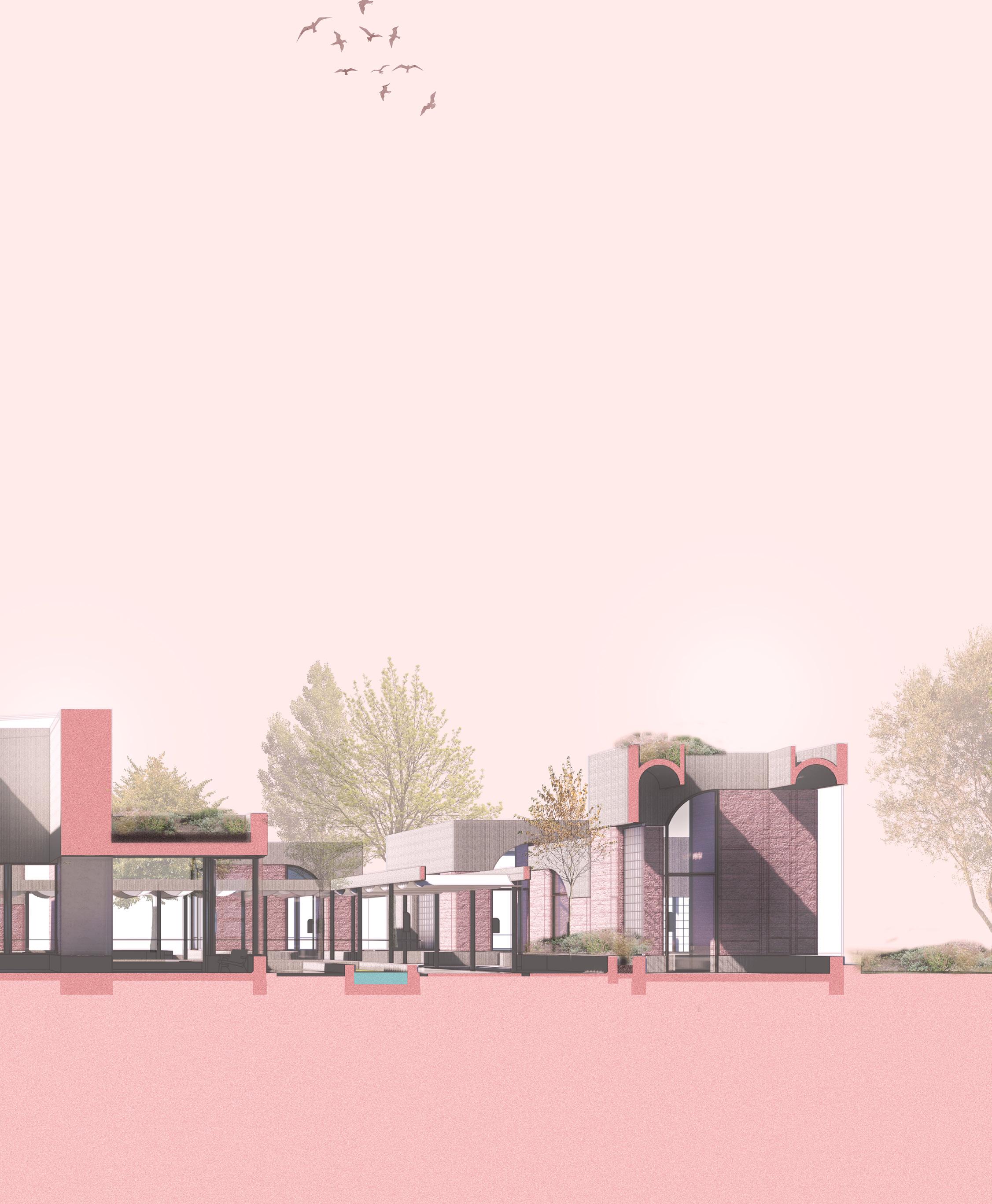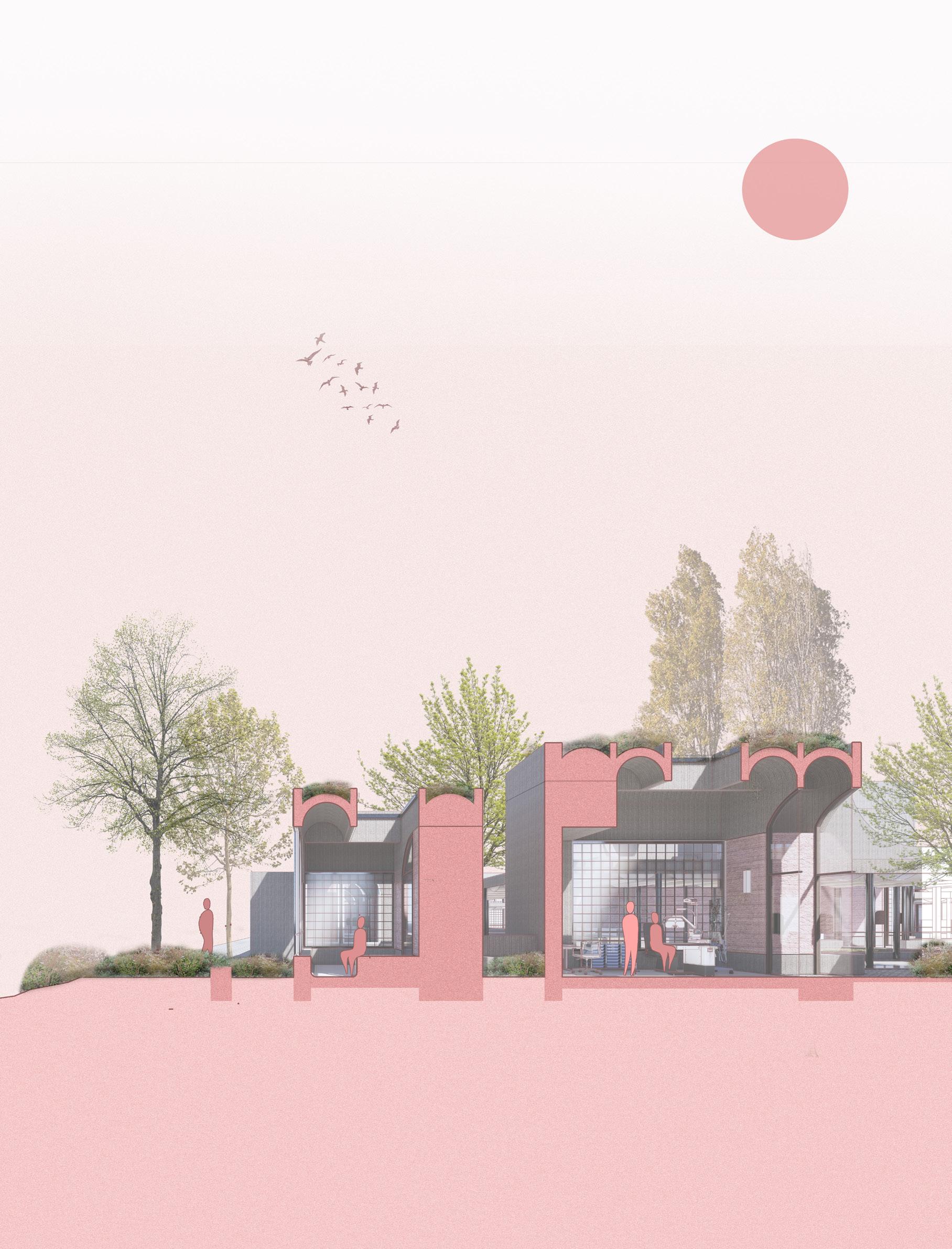At the same time, a new social centre is created to supplement the new clinical approach. This new centre is an experimental ecosystem wherein traditional therapies are given a backseat to more alternative and physical forms of therapy. The core idea is that through providing therapies focusing on art, music, horticulture and movement, several social issues associated with visual impairments can be addressed. These therapies manifest themselves through several architectural interventions. Primarily, spaces are created for the therapy and tuition of these fields in a semi-private environment, coupled with highly public spaces for dialogue, exhibition, performance and social interaction with the wider community. Concurrent to the eye hospitals relative introversion, the social programme is the public face of the total plan. Through encouraging the visually impaired community to partake in these physical activities, we are encouraging a sense of self, a sense of accomplishment, and sense of purpose. A fortuitous byproduct of this is the exposure of the visually impaired community to the wider public, and creating valuable opportunities for education an financial independence.