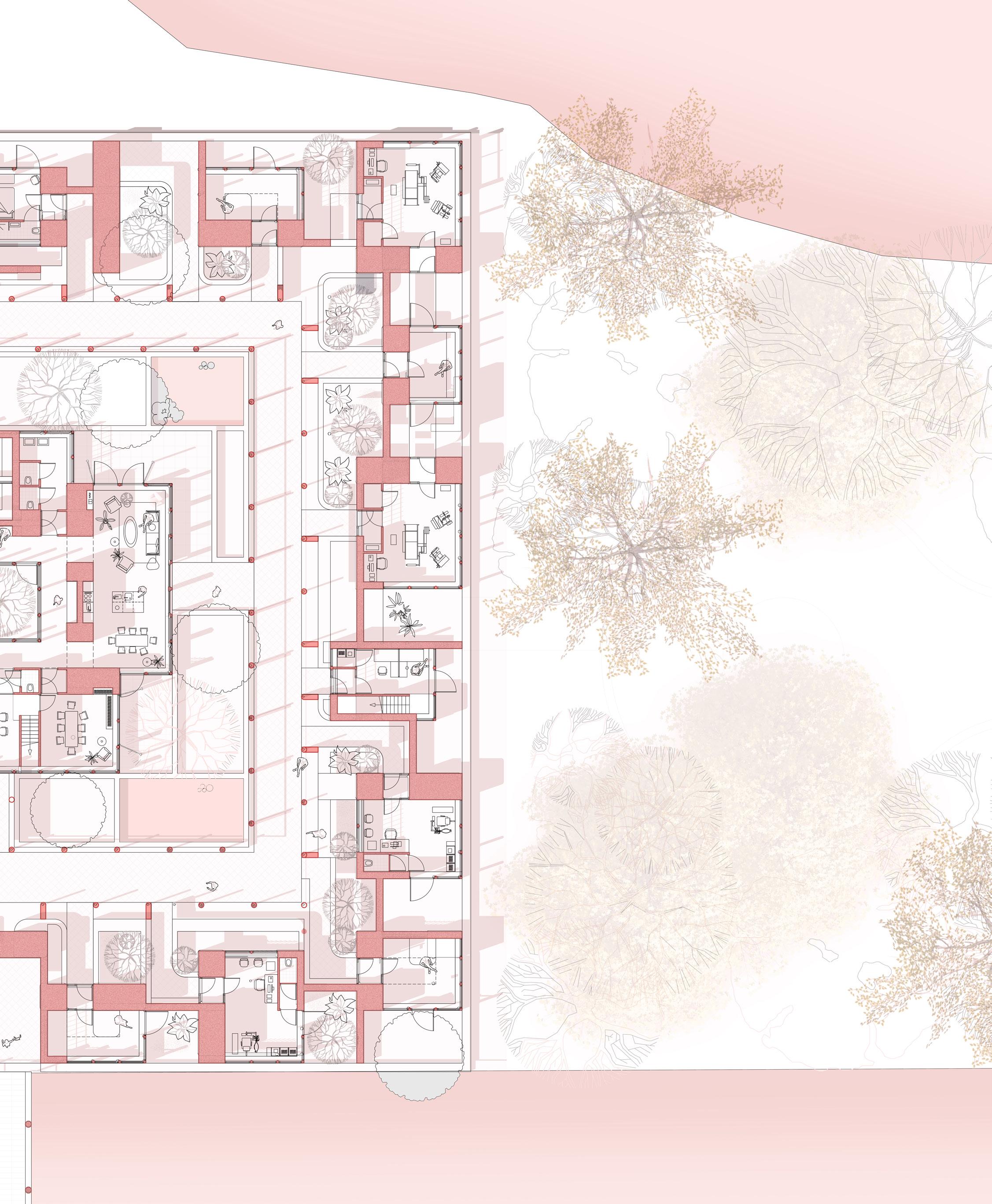 This project aims to address these current shortcomings in care for the visually impaired, by proposing a holistic combination of clinical and social programmes. Through a new smaller scale hospital architecture, the patient’s mental wellbeing is placed as an equal with the clinical aspects of care. This centre will redefine how we look at the traditional eye hospital architectural precedents through incorporating spaces to escape, reflect, socialize and grieve, all meanwhile in the backdrop of a communal atmosphere in a truly safe environment This new hospital will establish new approaches to managing the treatment, testing, diagnostic and clinical architecture challenges we face today.