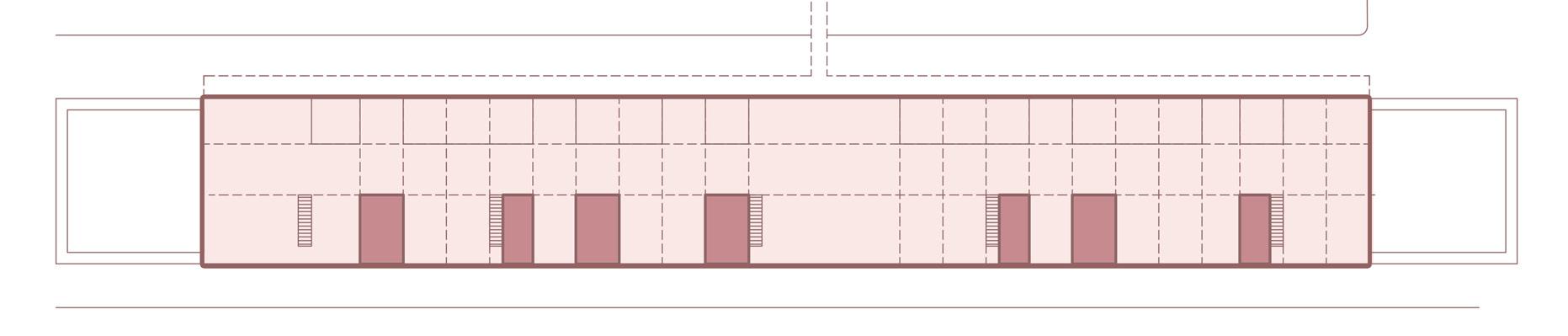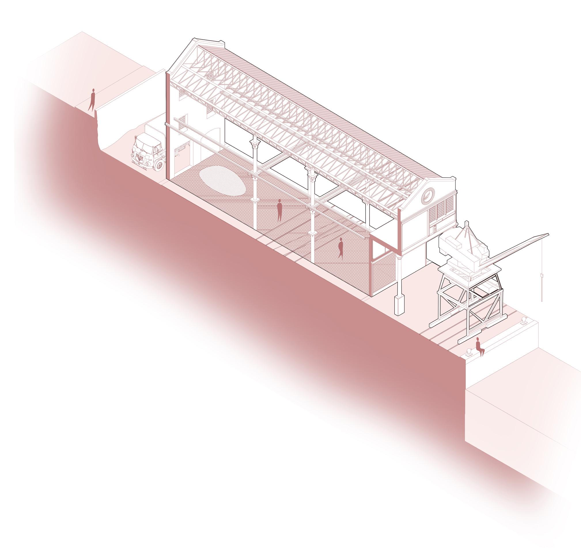 Here, one of the main staircases rises from the central high-street towards the south side of the sugar sheds. Under the semi private atelier sits a space for future development through entrepreneurship. Underneath the stair and lift core sits a storage space.