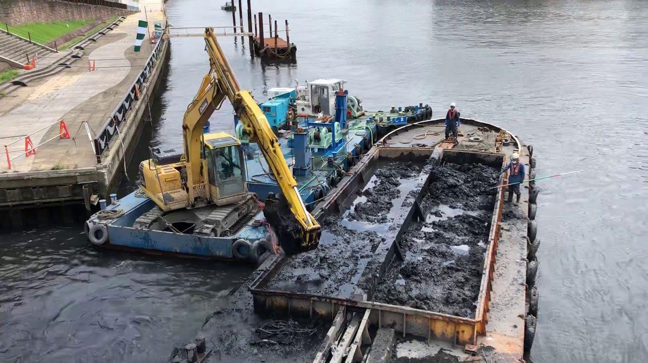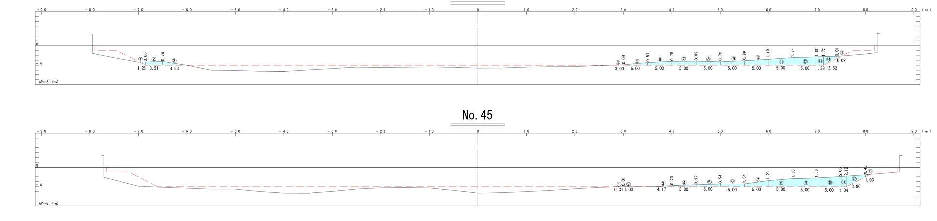 Due to the flow from the upstream, sediment accumulates at the bottom of the Sumida River. The Tokyo Metropolitan Government makes riverbed a cross-sectional survey every four years and uses those drawings as a guide for dredging operations to remove sediment.