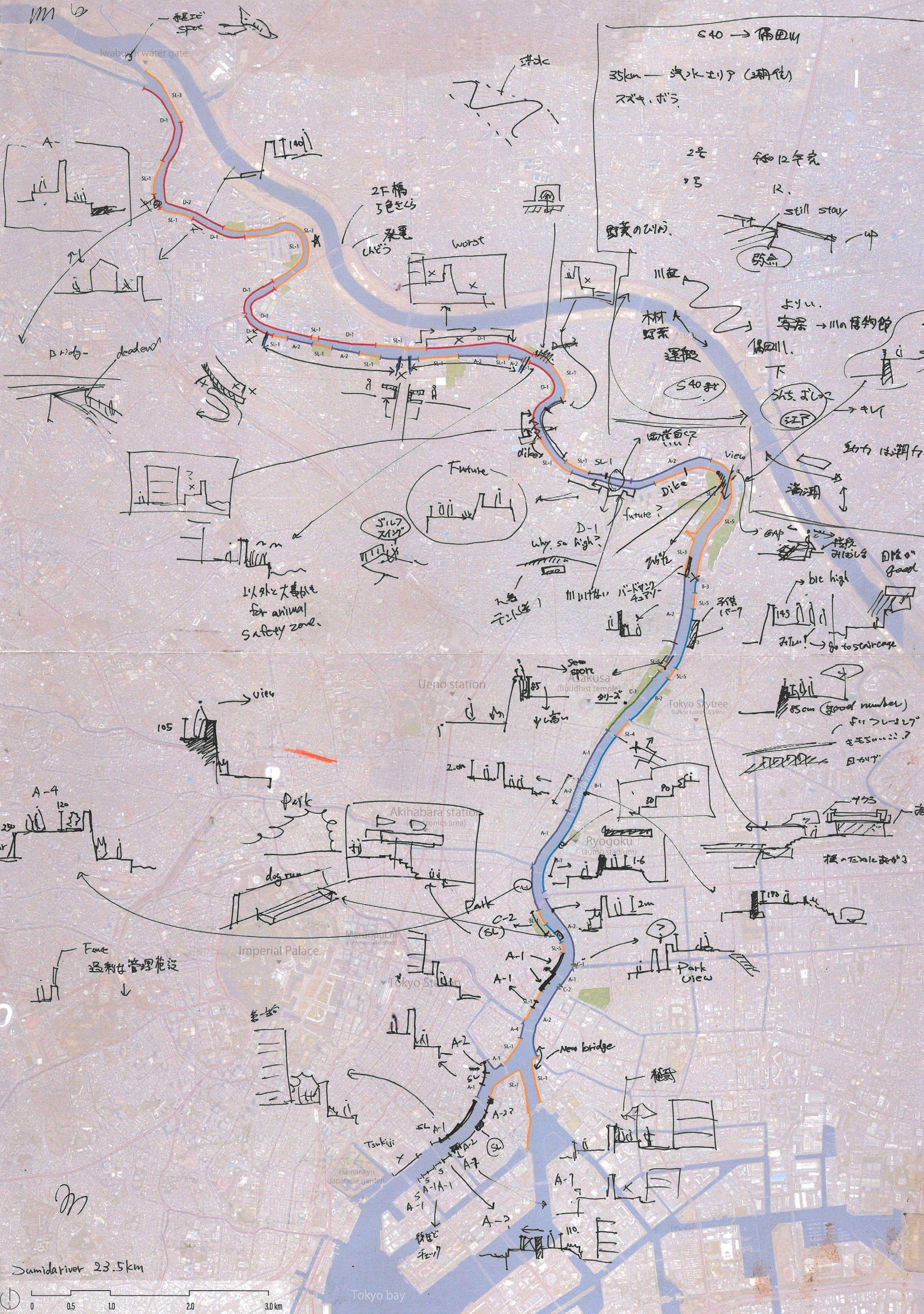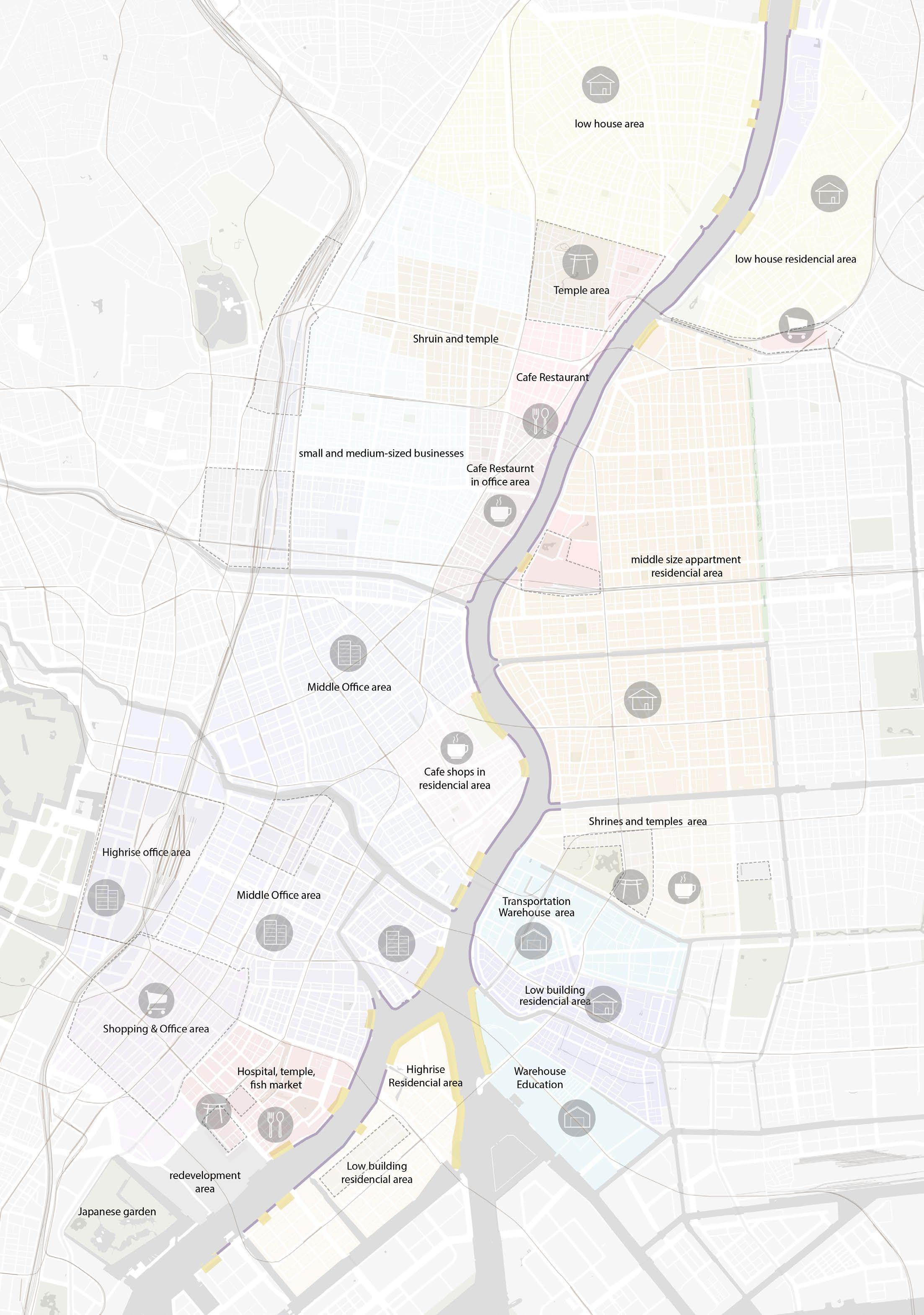 Tokyo is situated in the delta of Kanto Plein. Because of this topological situation, Tokyo has many rivers, canals and harbours. The Sumida River, one of the huge rivers in Tokyo, flows next to the metropolitan area of Tokyo. For my graduation project, I would focus on the Sumida River because it has played an essential role for a long time, both culturally and functionally, and the river represents Tokyo as a city river.