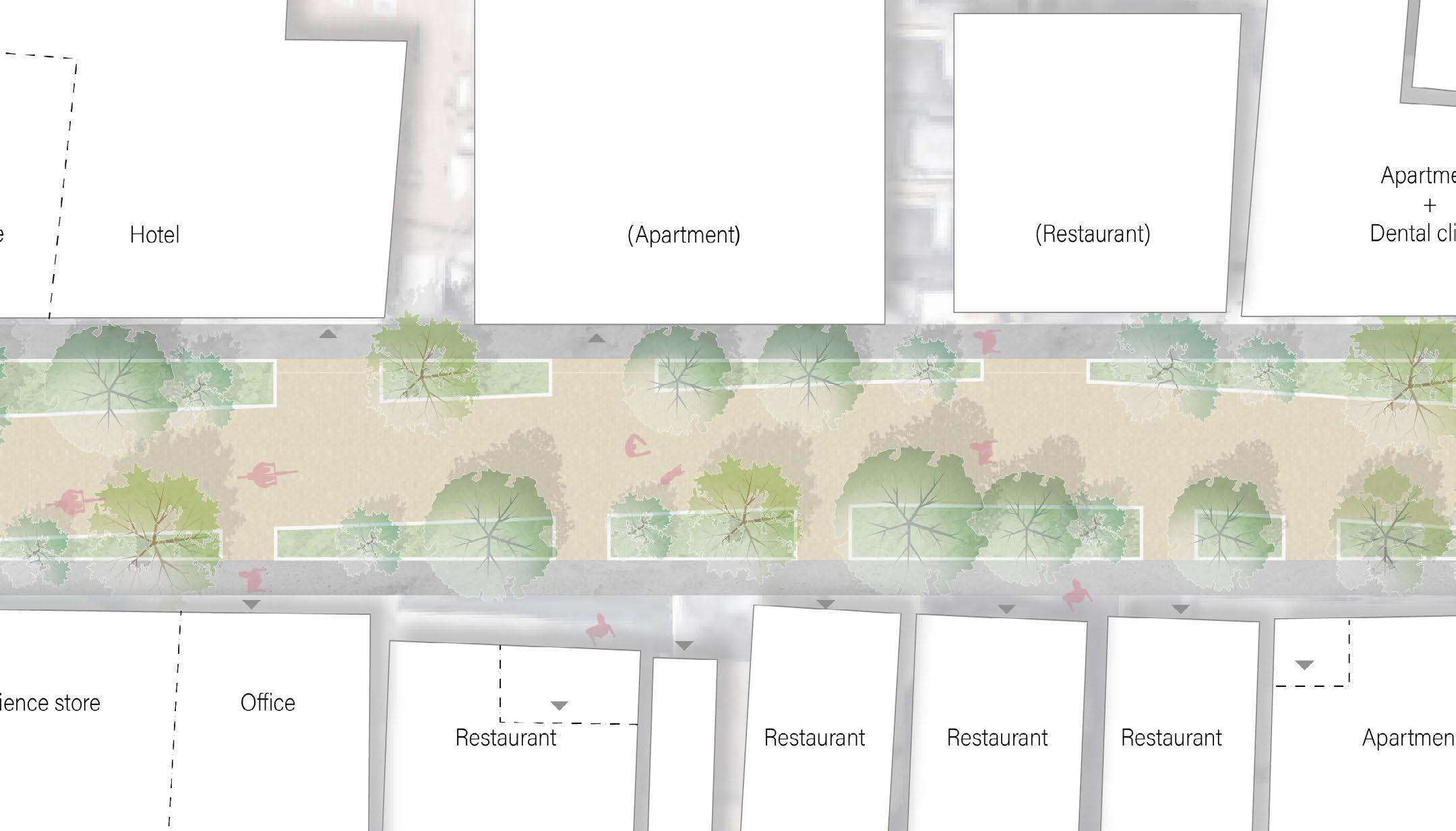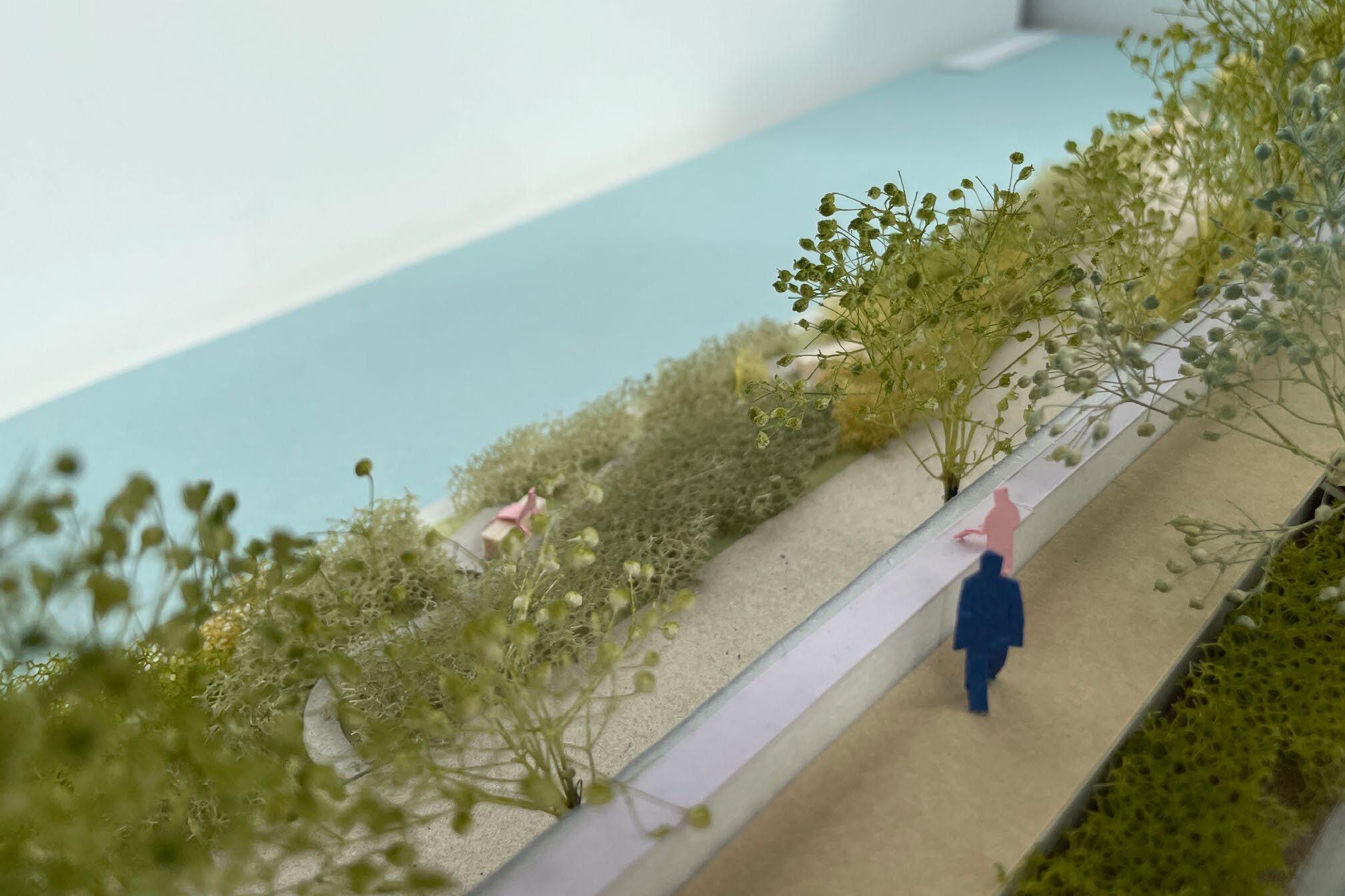 Here, the main characters are water creatures. At the inner curve of the river, a space is created to serve as an ecotone where water creatures can habit. The pavement of the river space and part of the quay wall will be broken up to create a tidal pool.